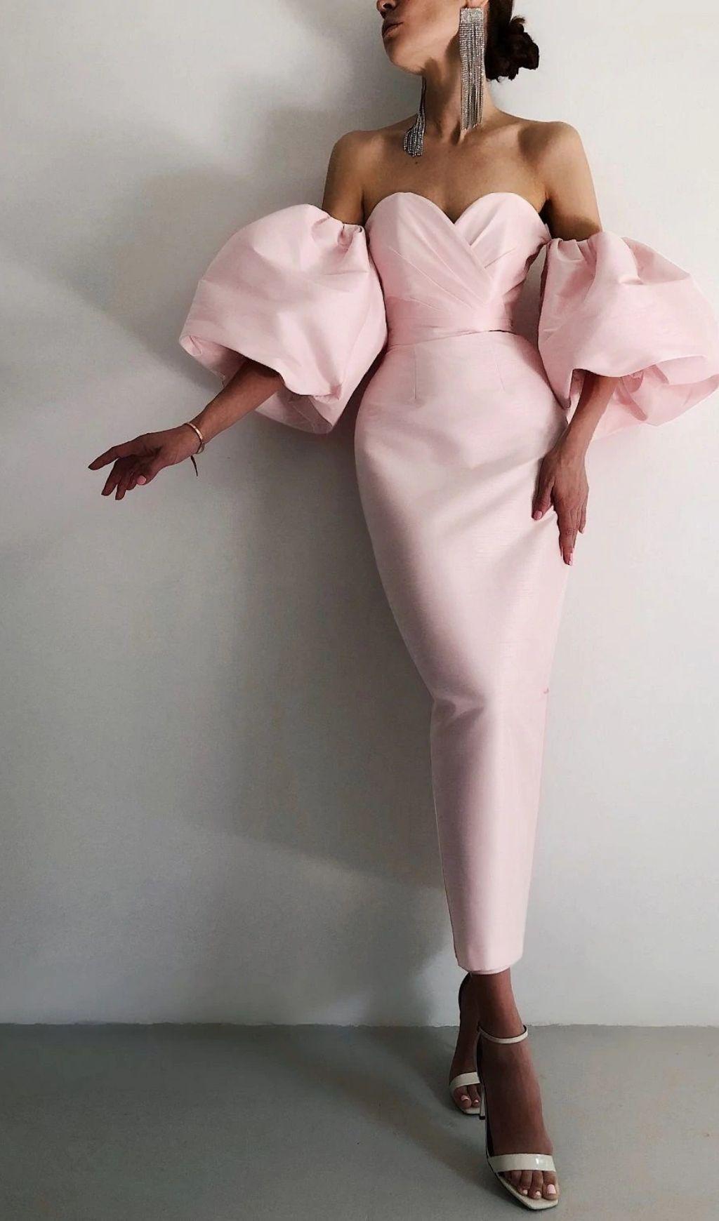 Romantic yet dramatic is how we love to describe this Satin Strapless Midi Dress in Pink. It is cut from a lustrous luxurious heavyweight duchess satin and cleverly panelled to create that perfect liquid hourglass shape. The oversized ruffles to the shoulders add drama, yet it sits sexily in an off-shoulder cut.