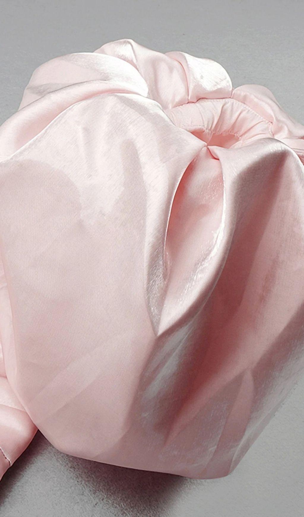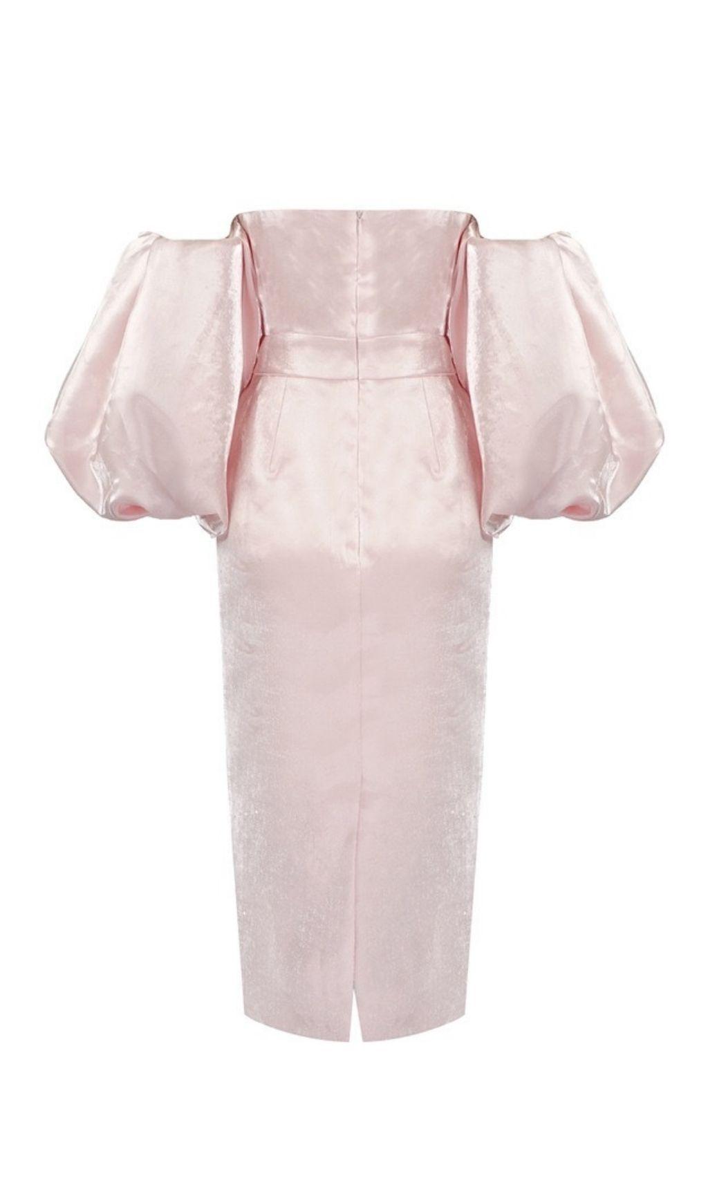 SATIN STRAPLESS MIDI DRESS IN PINK