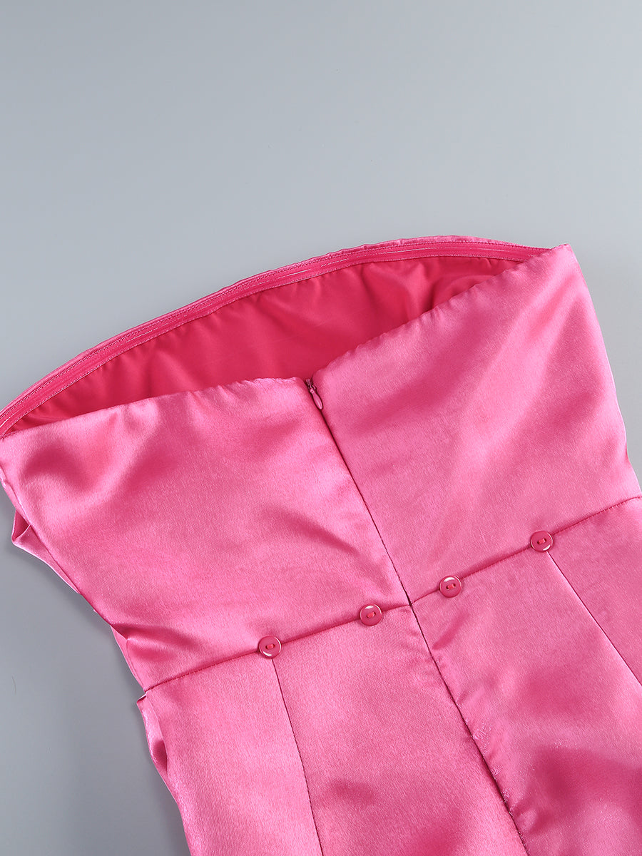 Effortlessly steal the spotlight in our Pink Strapless Bow Mini Dress! Designed for the daring and bold, this dress features a flattering strapless silhouette and a playful bow detail. Perfect for any adventure, this mini dress will have you turning heads with every step you take. Don't miss your chance to make a statement!Bow dress
