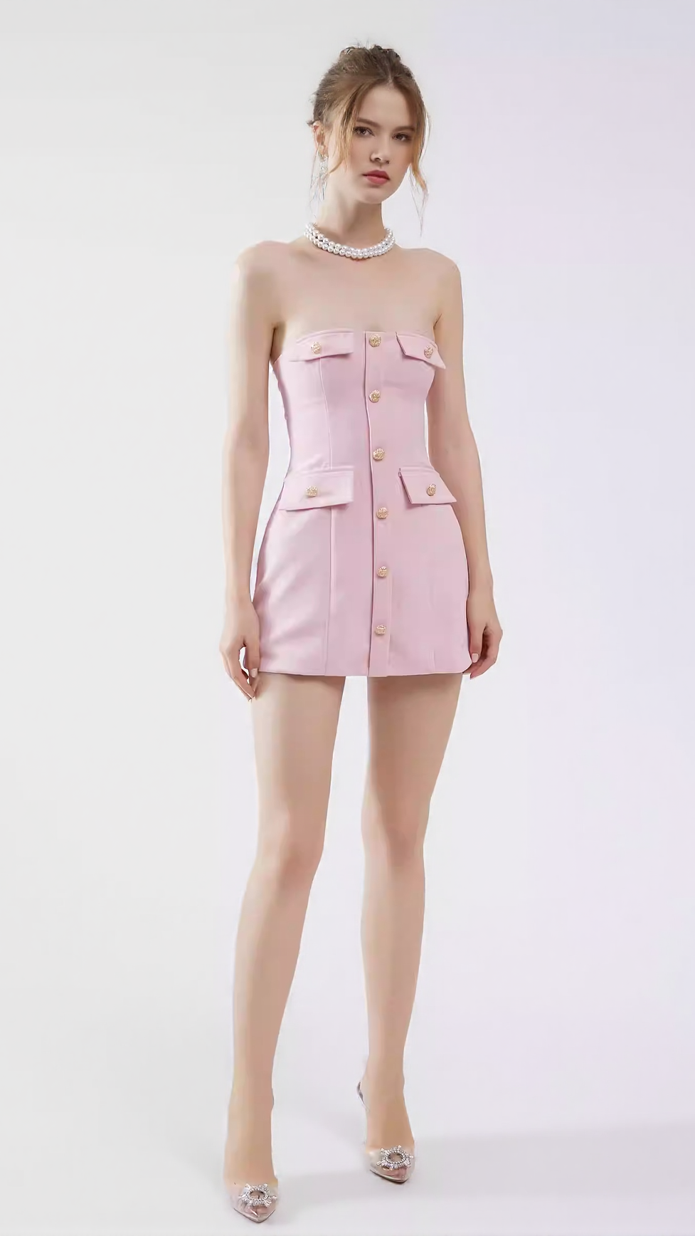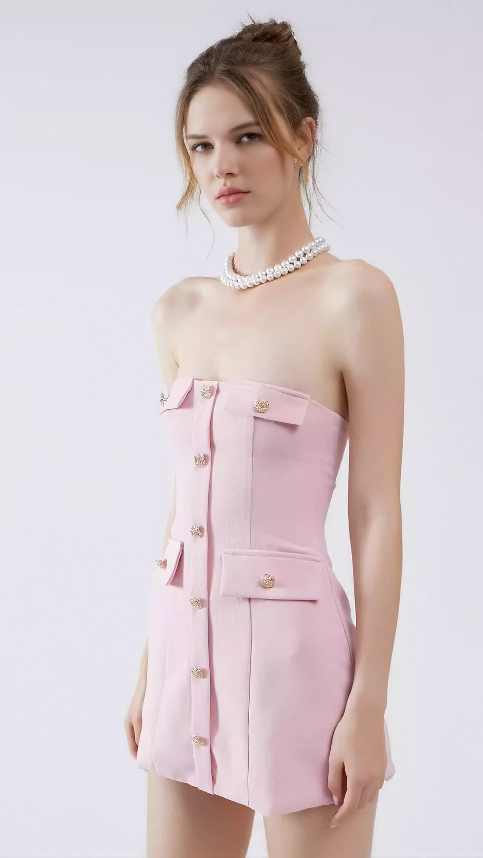 Get ready to turn heads in our pink strapless mini dress! With a sexy tube top design and flirty buttons down the front, this dress will make you stand out. Perfect for a night out or a day at the beach. Who says you can't be effortlessly stylish?!