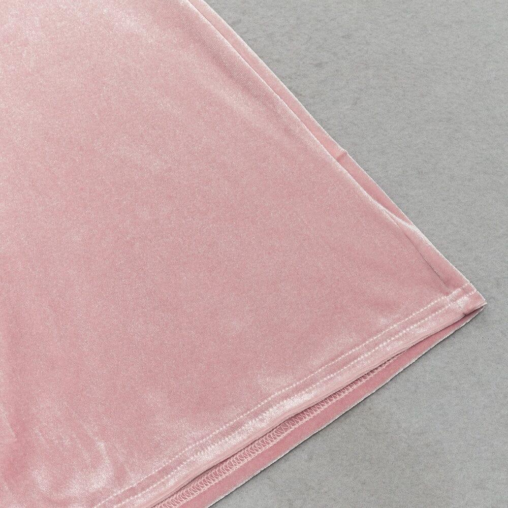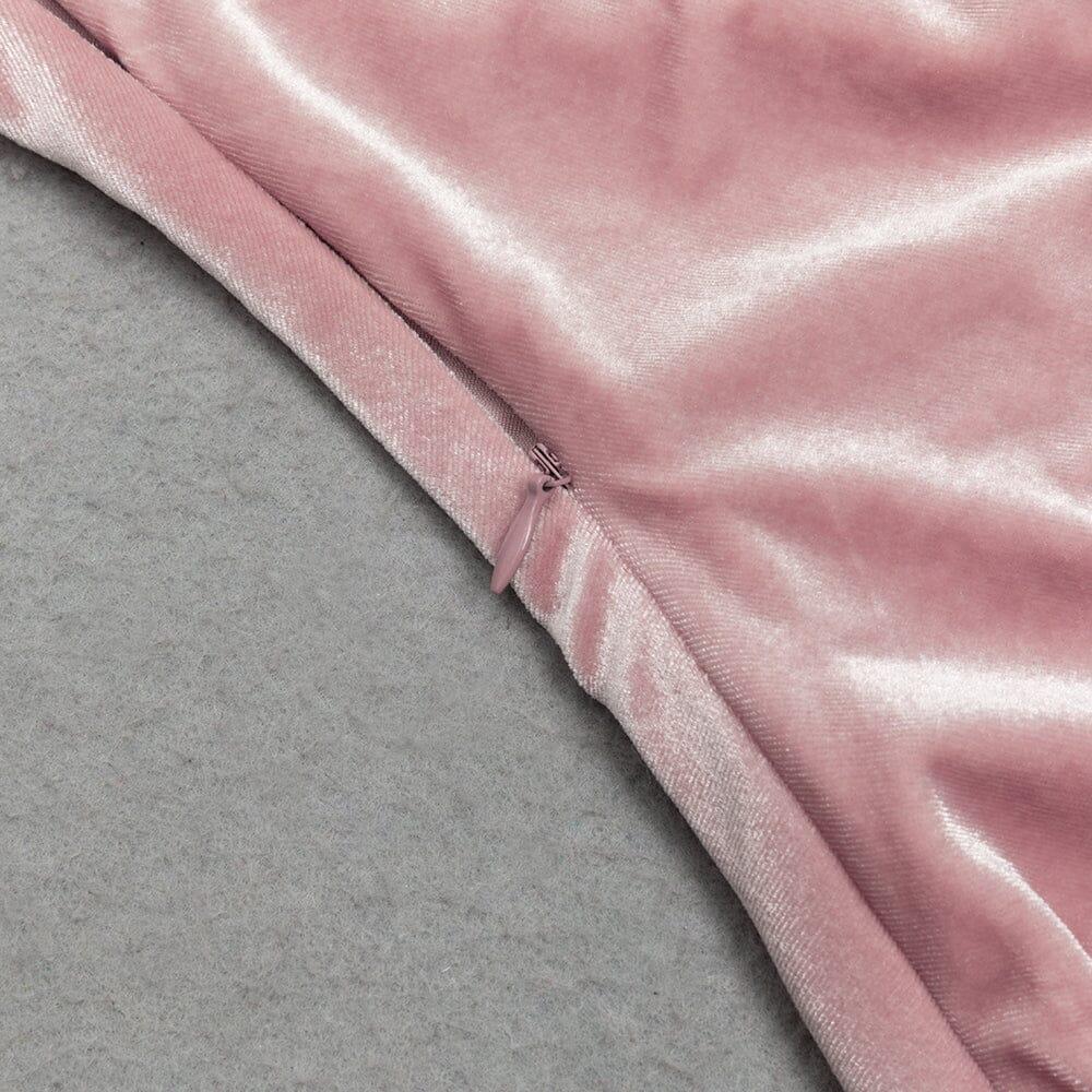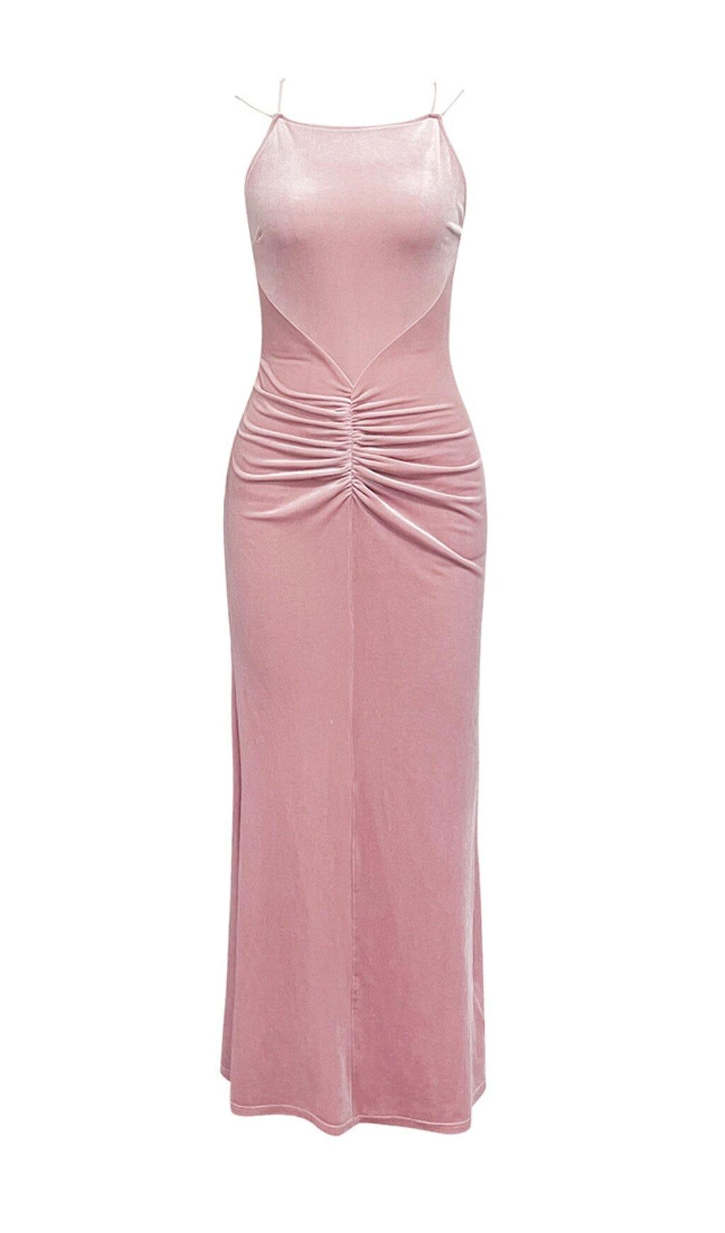 PINK SUSPENDER BACKLESS VELVET PLEATED HIP DRESS