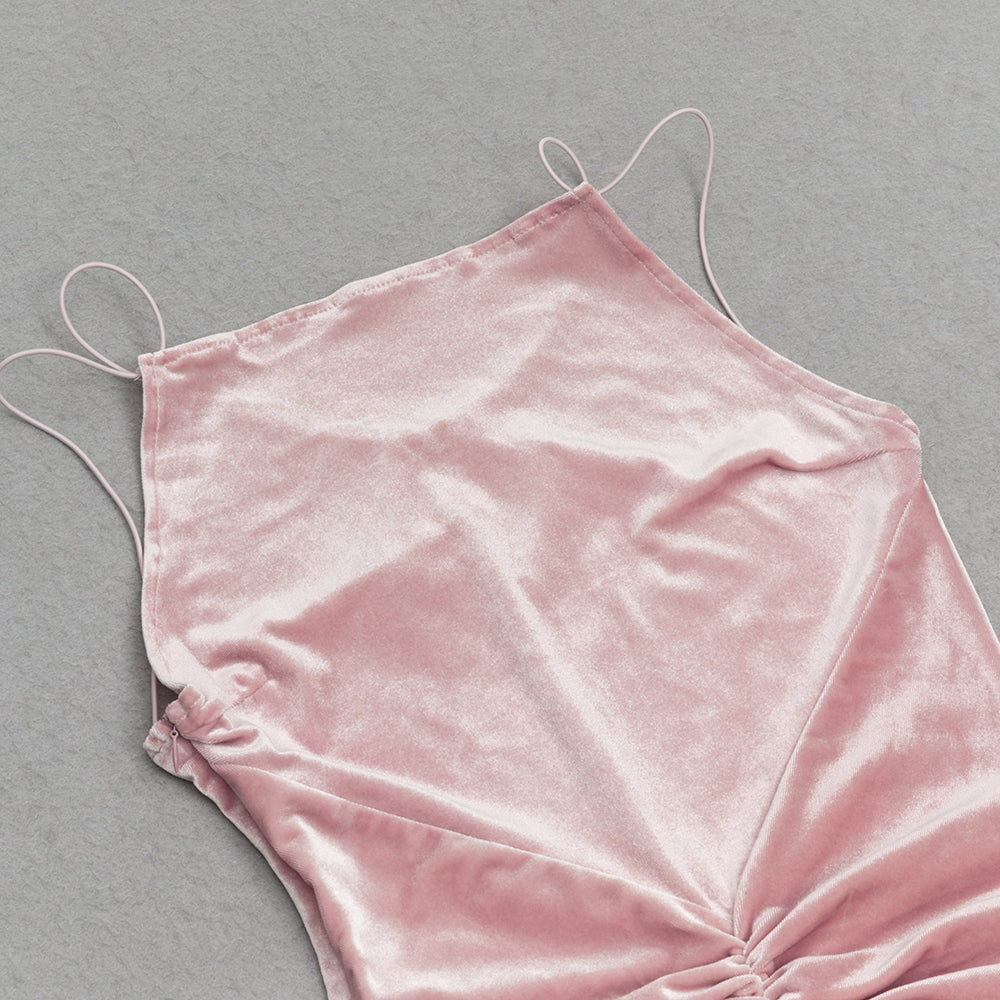 This lavish ABRA PINK VELVET PLEATED MAXI DRESS is sure to make a statement. Crafted from the finest velvet, this stunning dress hugs the curves in a sophisticated way, with intricate pleating and daring backless suspenders for an exclusive look.