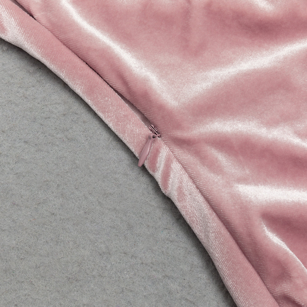 ABRA PINK VELVET PLEATED MAXI DRESS