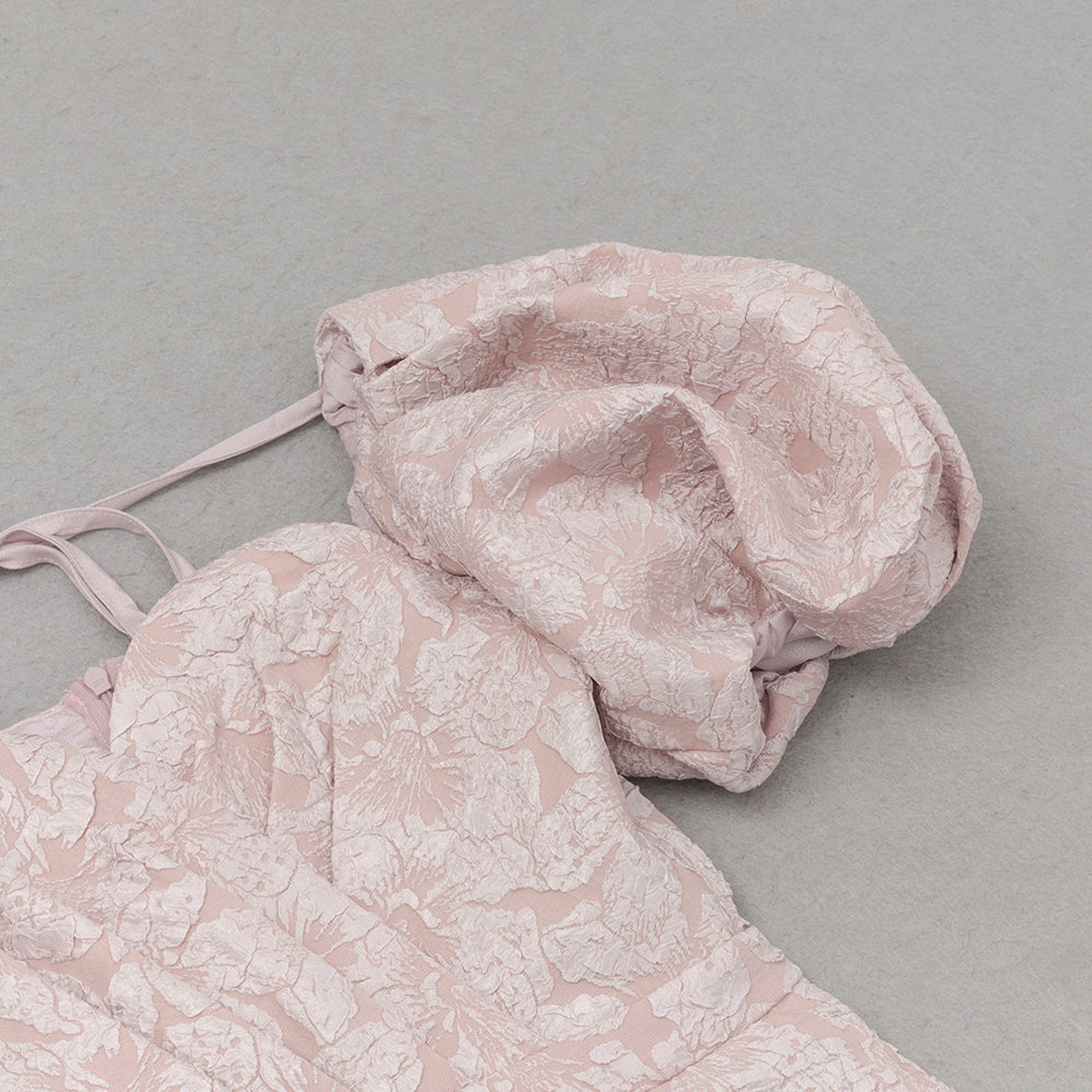 PINK SWEETHEART NECK PUFF SLEEVE SPLIT THIGH DRESS