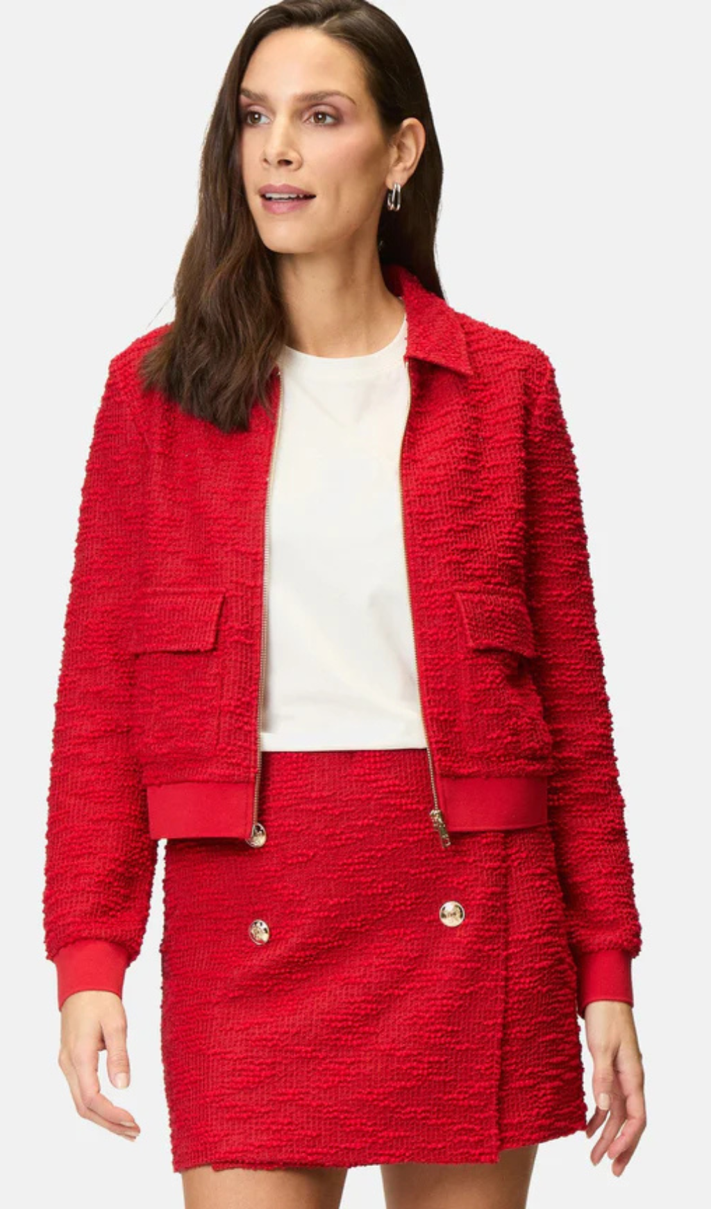 Plain jacket skirt set in red
