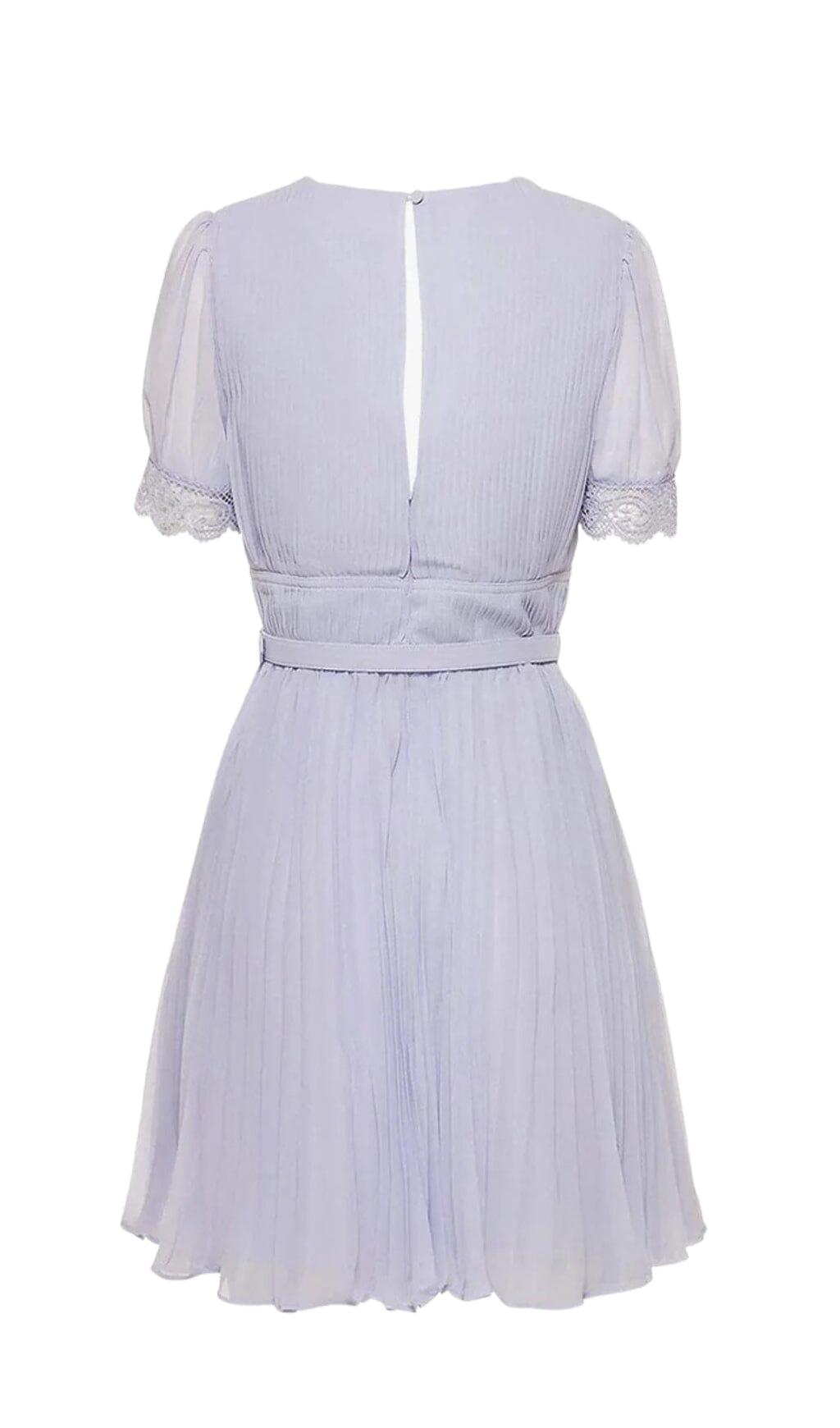 PLEATED CHIFFON MINI DRESS IN LAVENDER