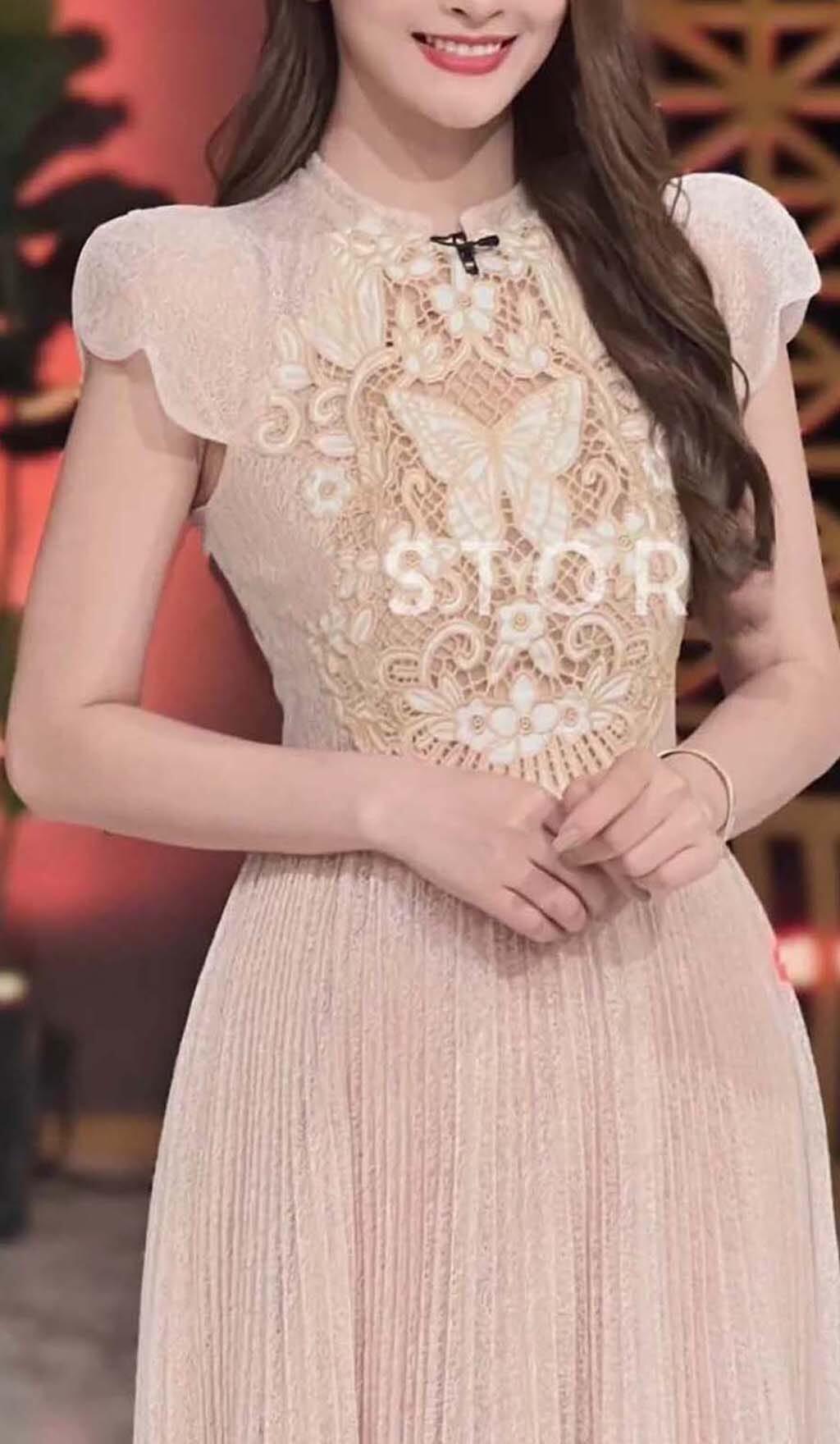 Experience ethereal elegance with our Pleated Embroidery Midi Dress in Beige. This dress combines delicate embroidery and precise knife pleats to create a look that is both angelic and refined.