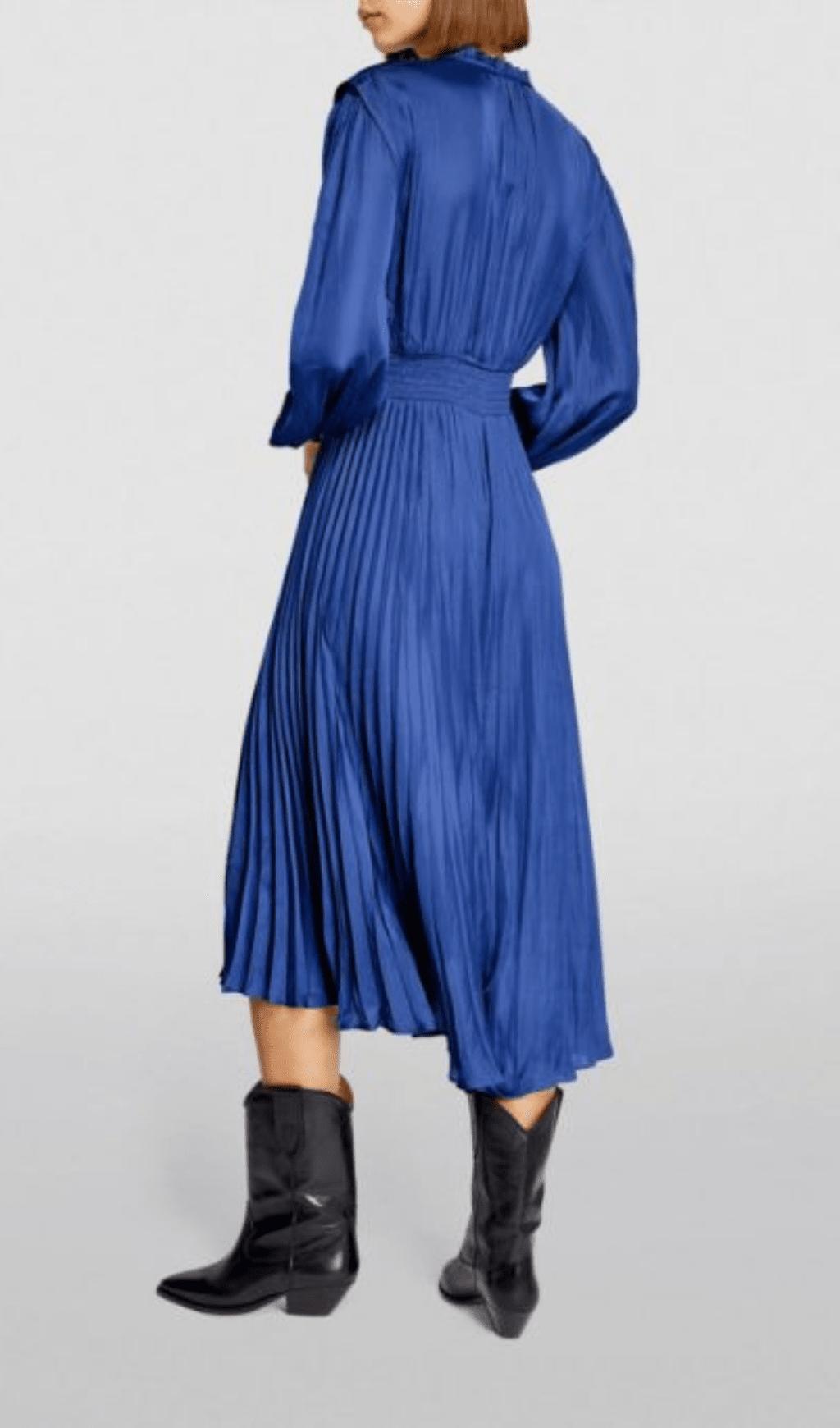 PLEATED SATINY MIDI DRESS