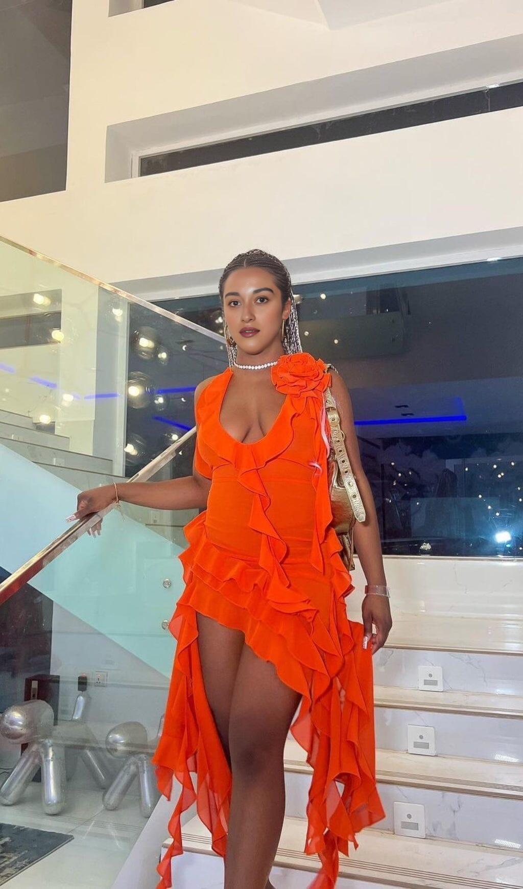 Make a statement and steal the spotlight with our Plunging Neckline Ruffle Dress in Red. This dress is designed to make you the center of attention, with its captivating ruffles that cascade from the deep v-neckline to create a truly show-stopping look.