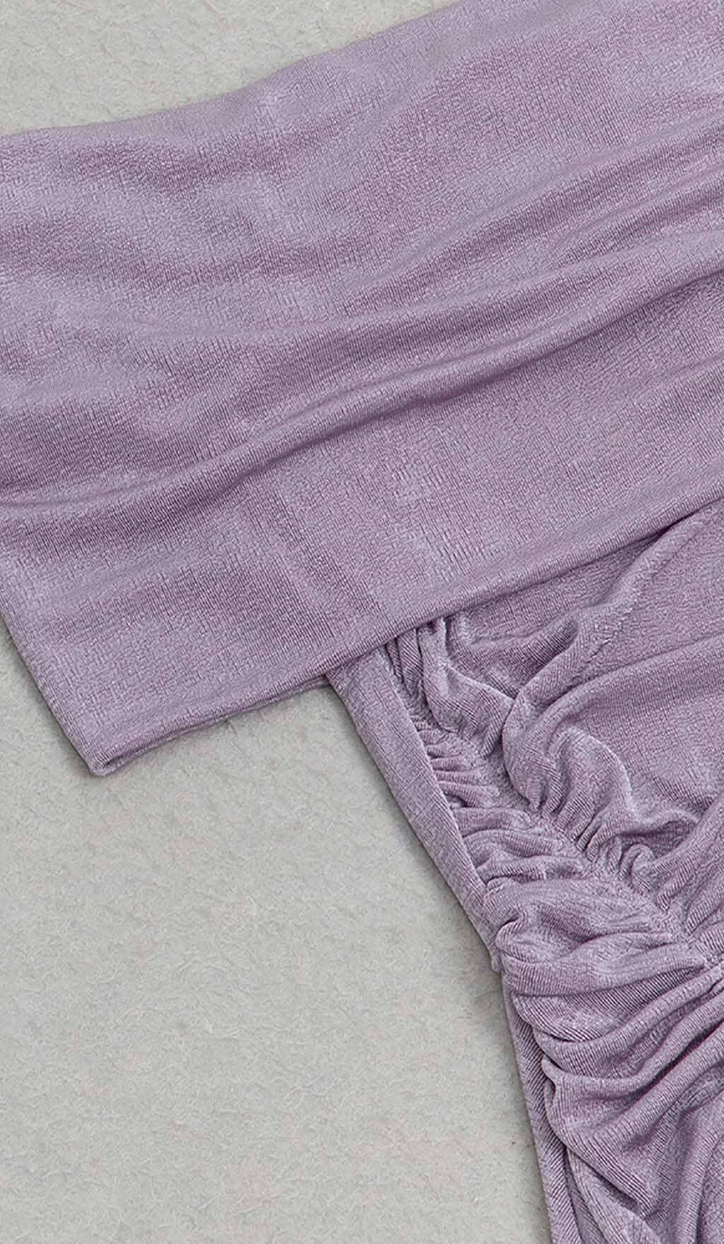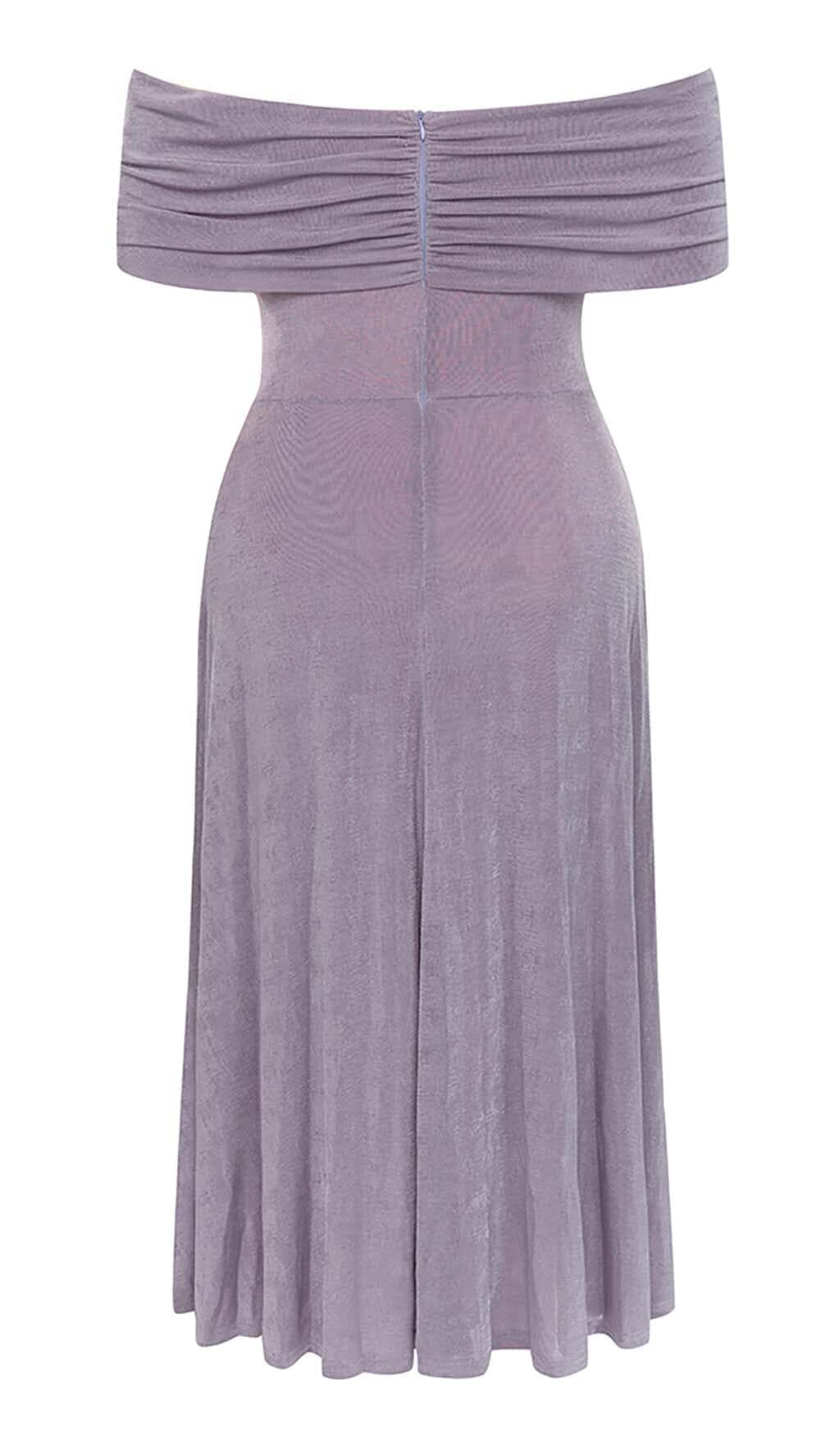 PLUS OFF SHOULDER MIDI DRESS IN PURPLE