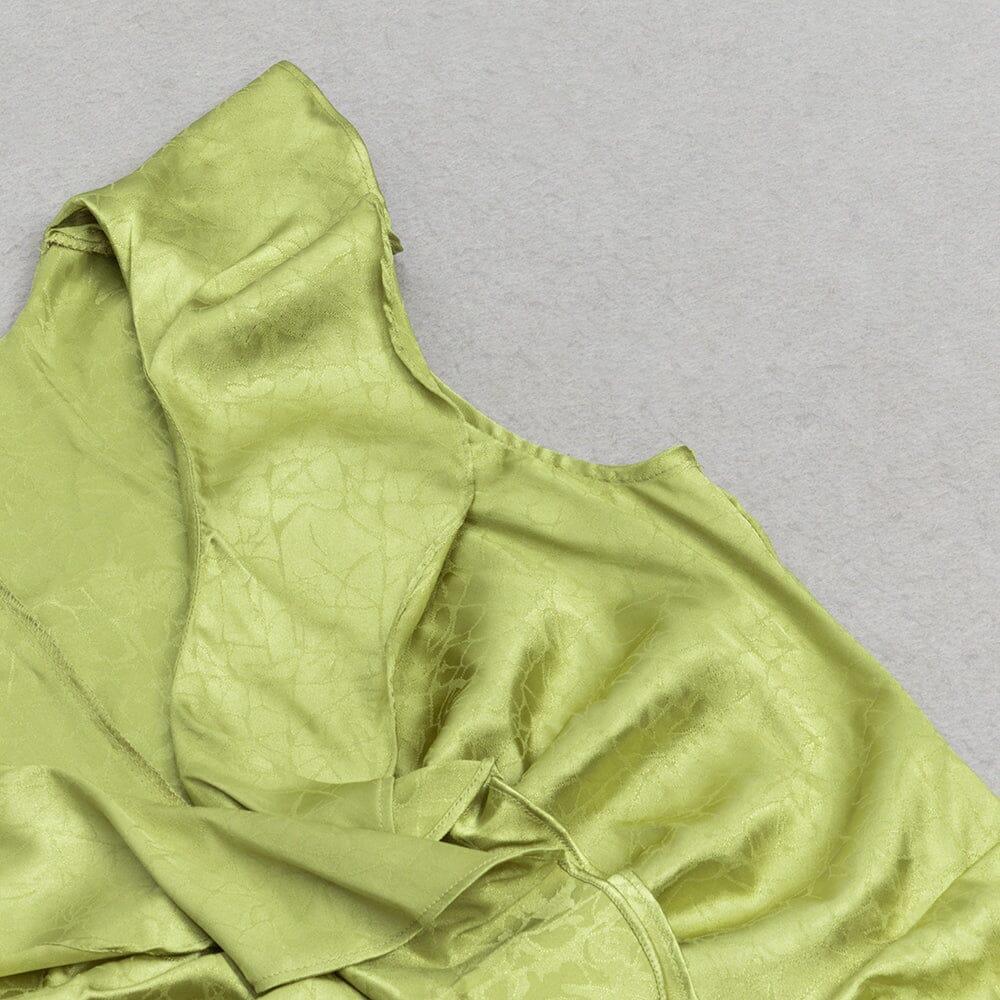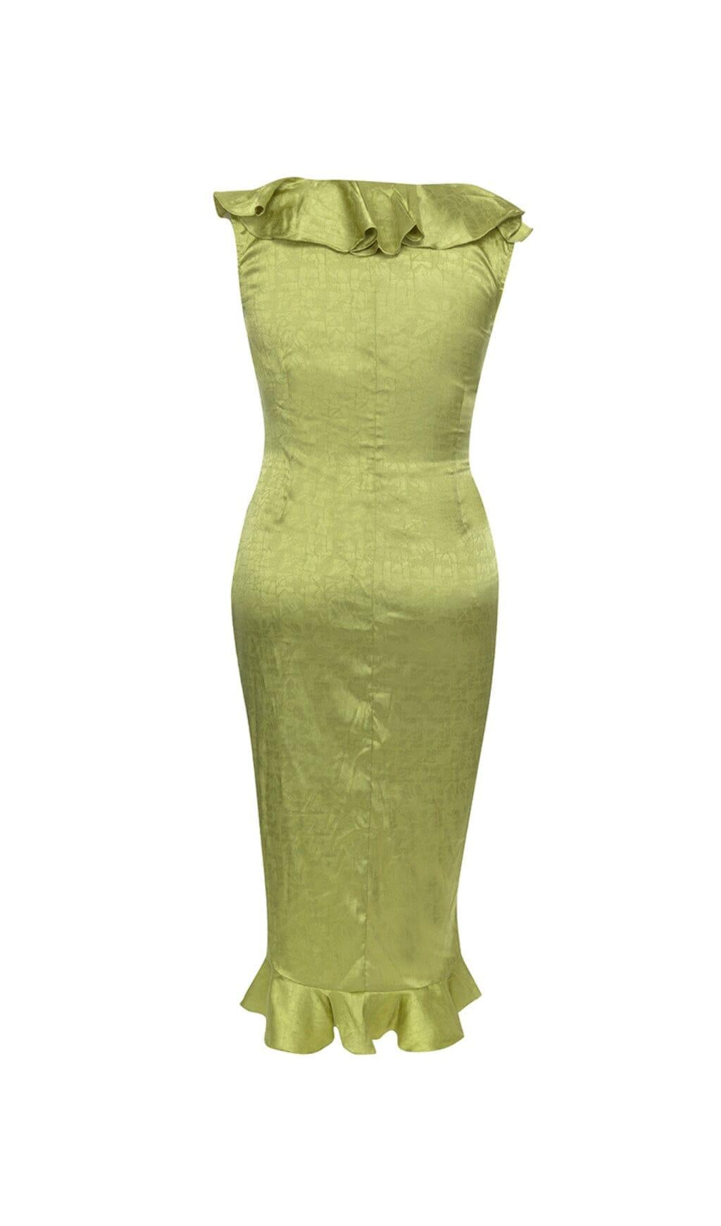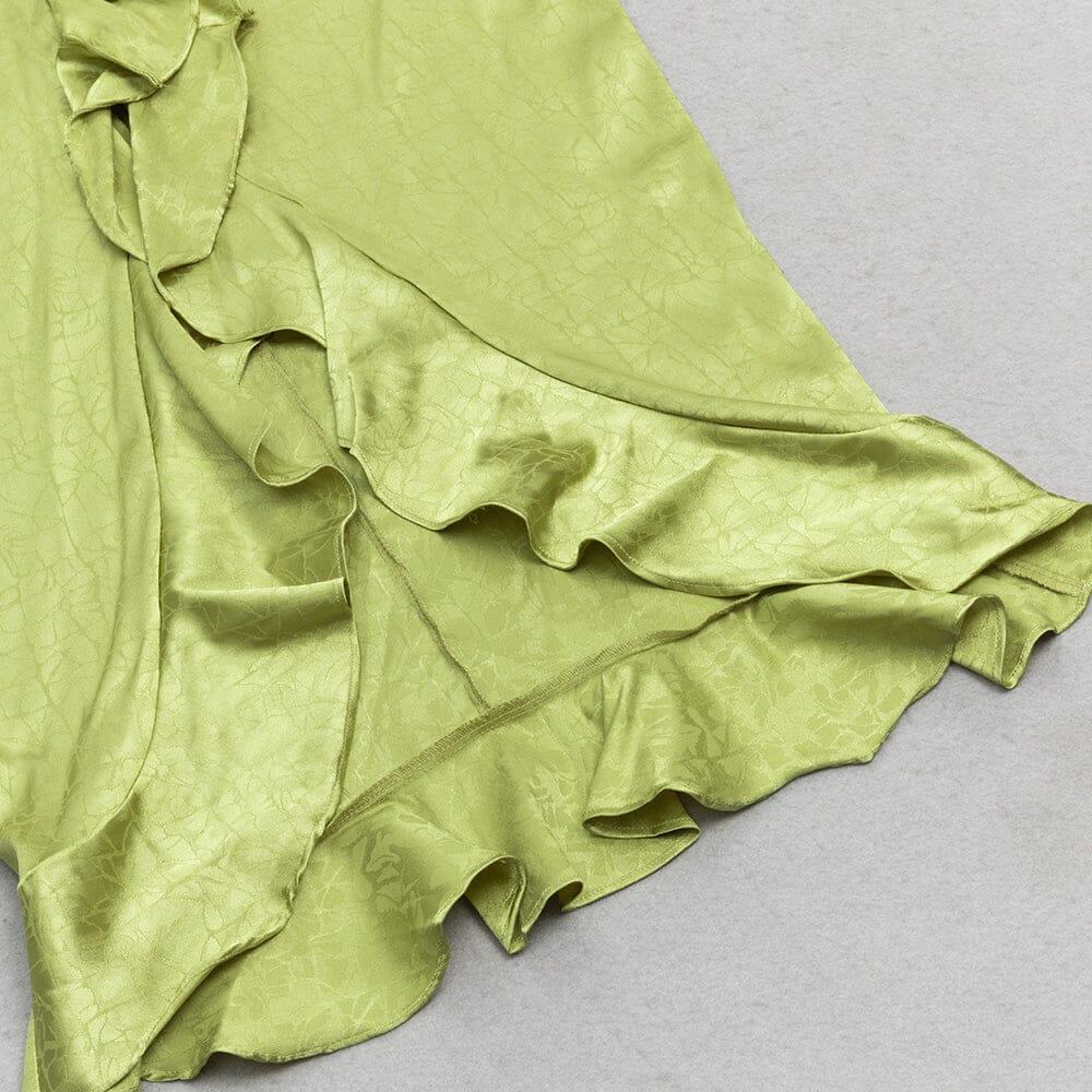 PLUS RUFFLE TRIM SATIN DRESS IN GREEN