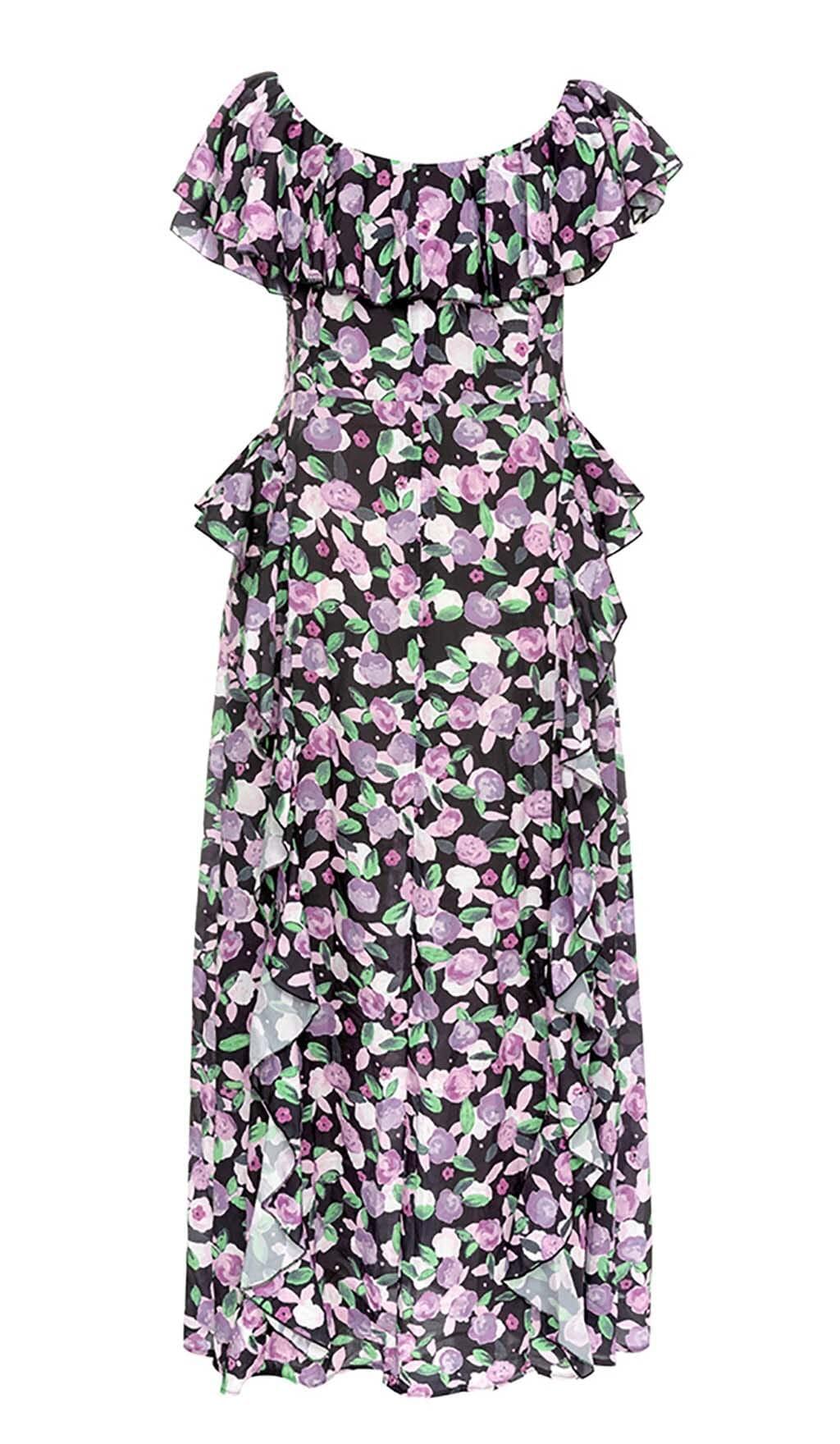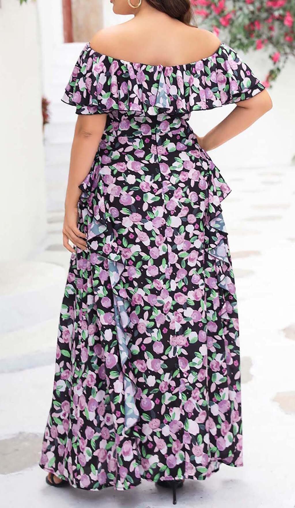 PLUS SIZE FLORAL RUCHED SLIT MIDI DRESS
