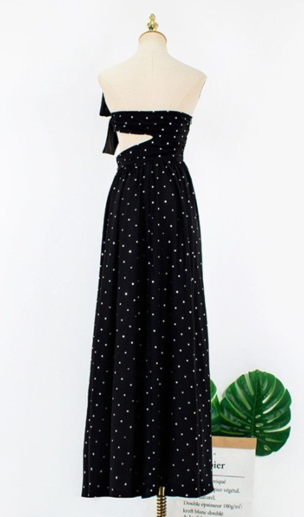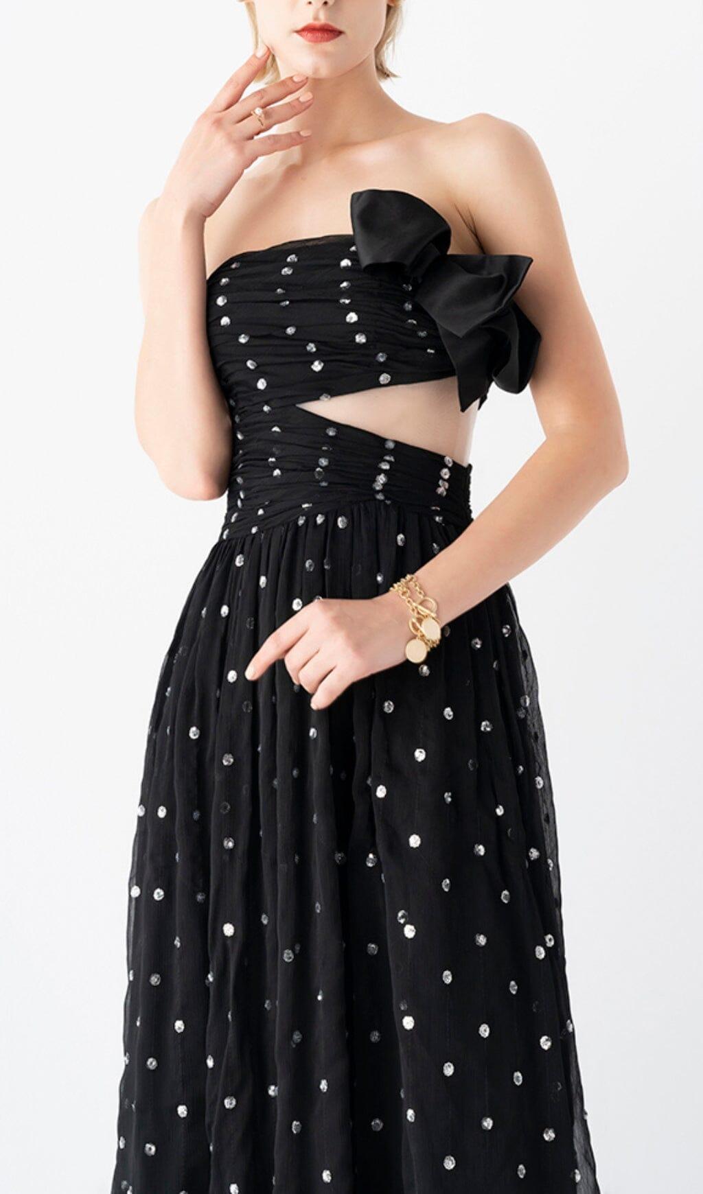 POLKA DOT BANDEAU DRESS IN BLACK