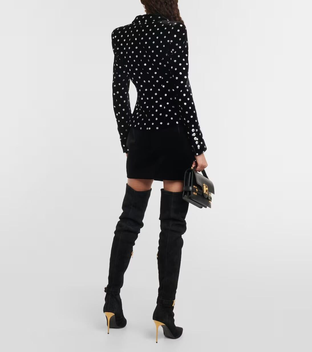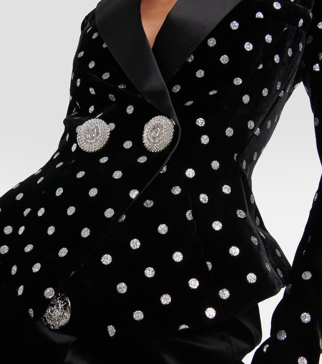 POLKA-DOT EMBELLISHED VELVET BLAZER