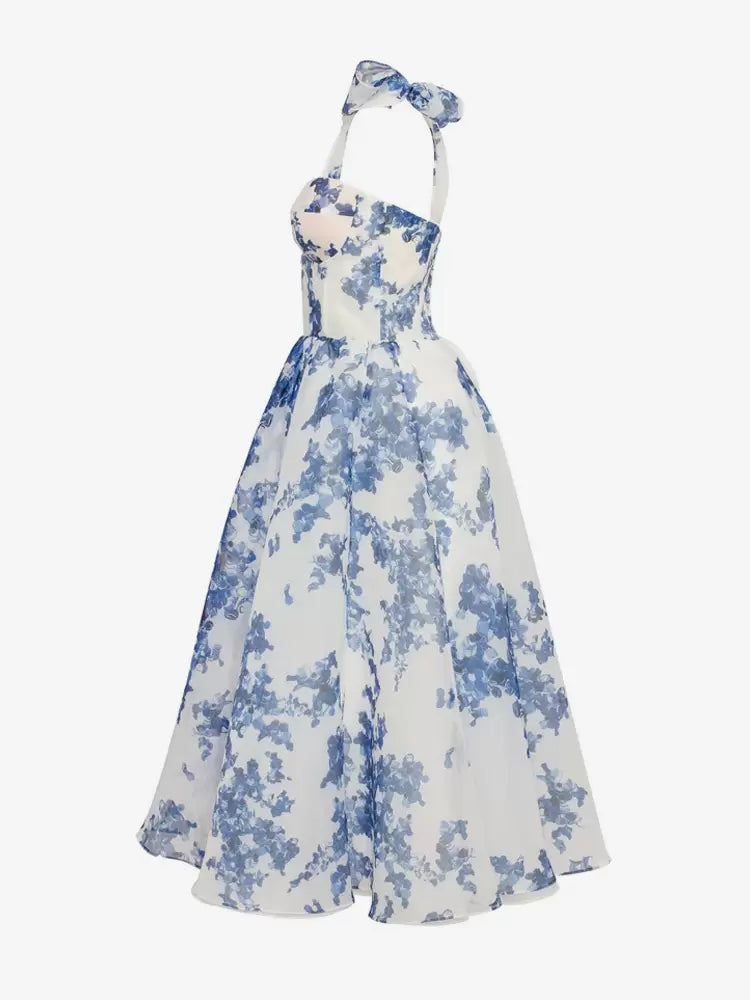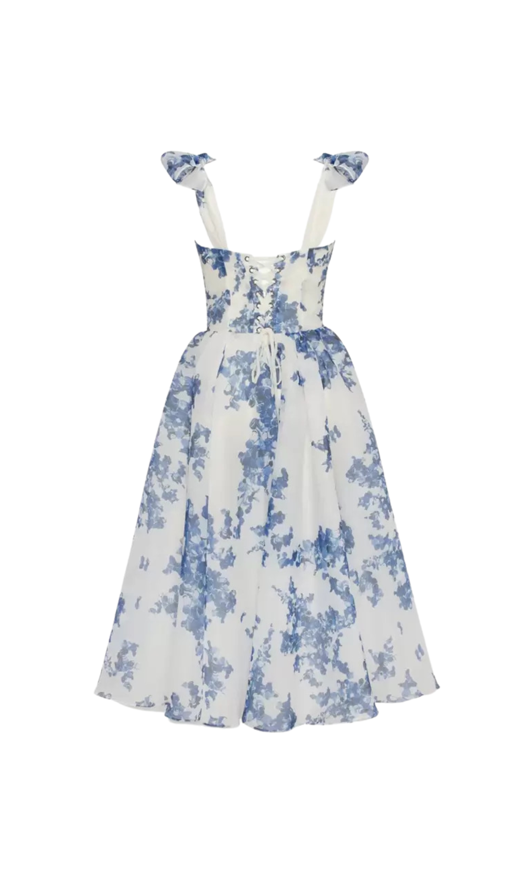 PRIMA PALE BLUE FLORAL A-LINE STRAP MIDI DRESS