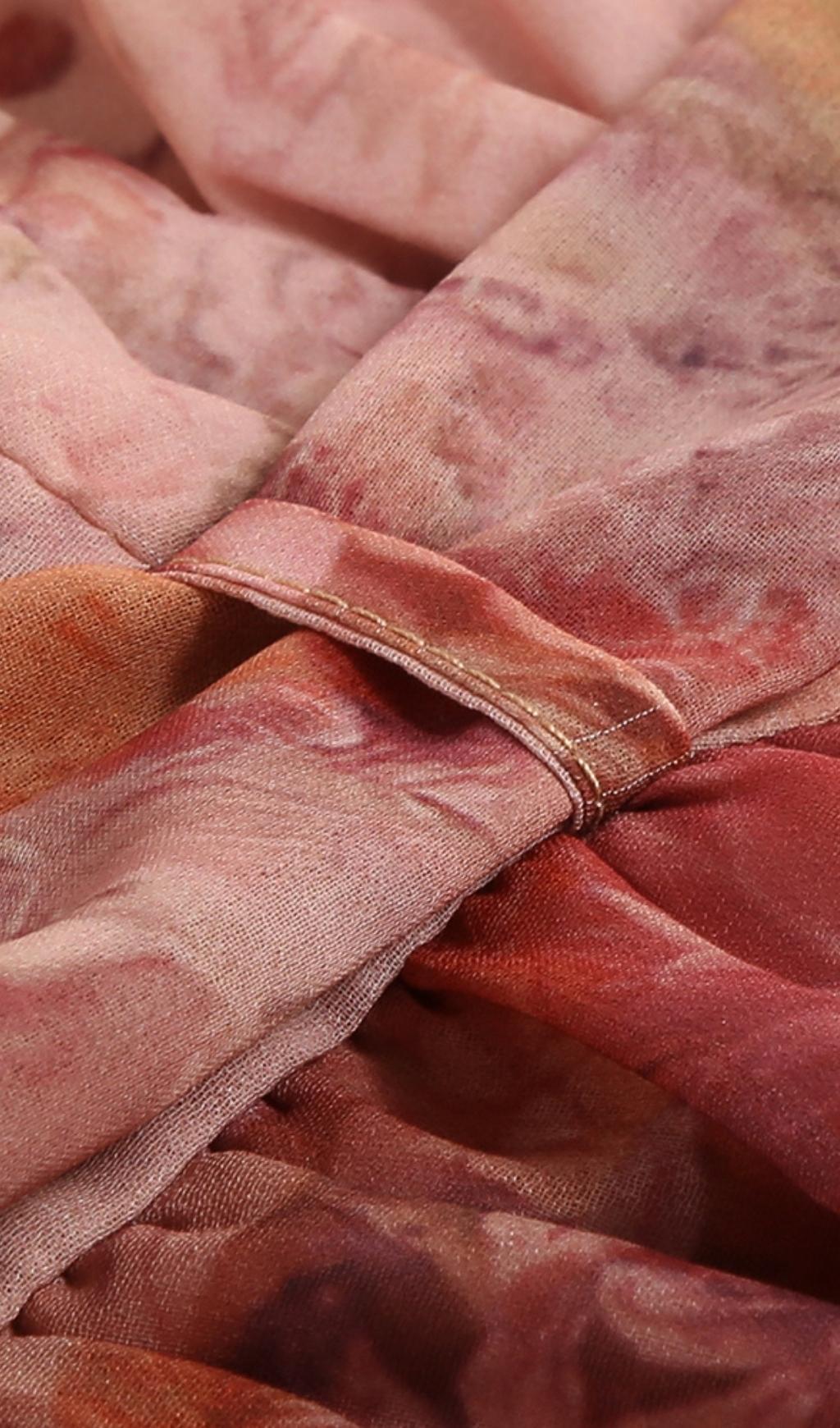 With its vibrant print design, this dress will make you the center of attention wherever you go. Be the most dazzling girl in the room and let your sense of style shine. The pink color adds a touch of elegance and sophistication, making you feel composed and confident.