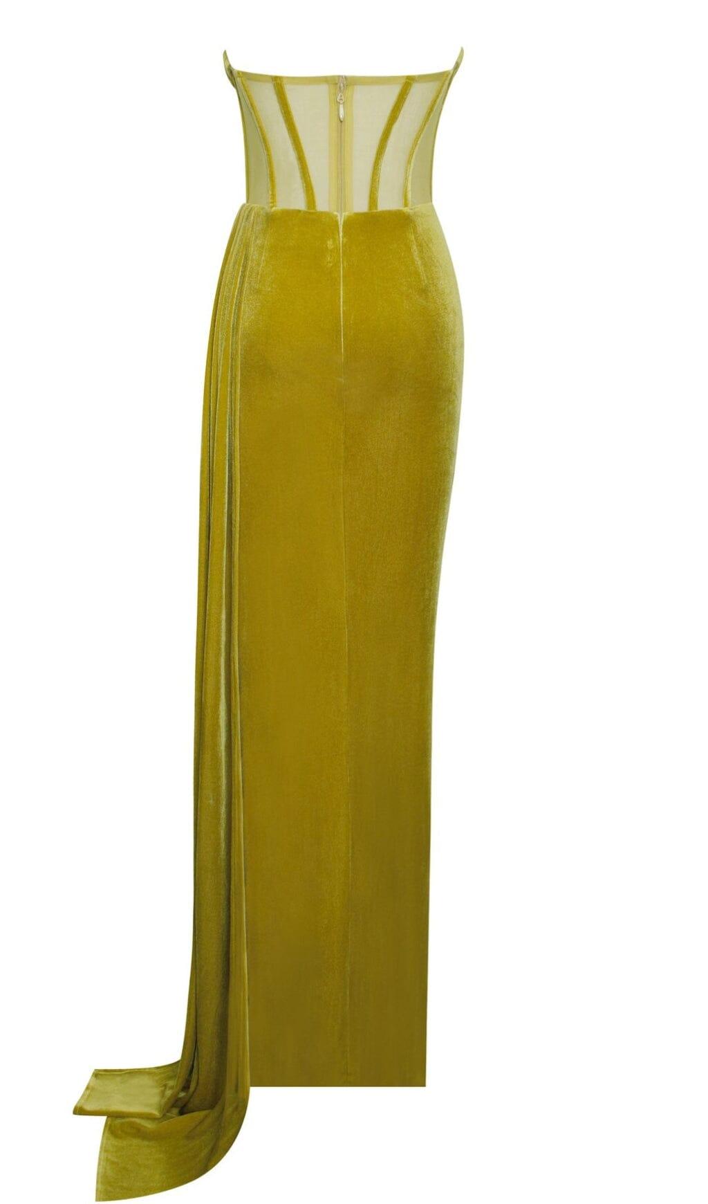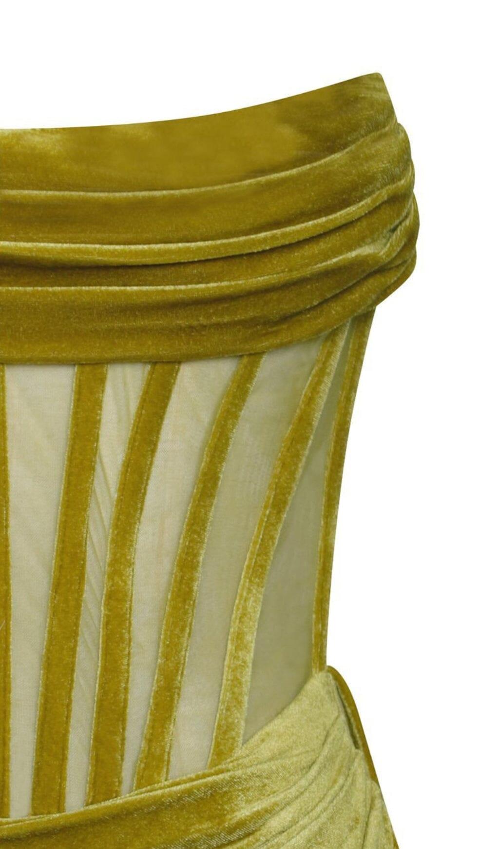 PRIYA GOLD DRAPING CORSET HIGH SLIT VELVET GOWN