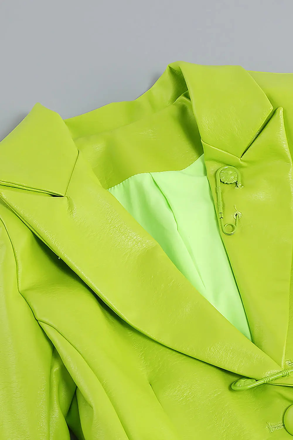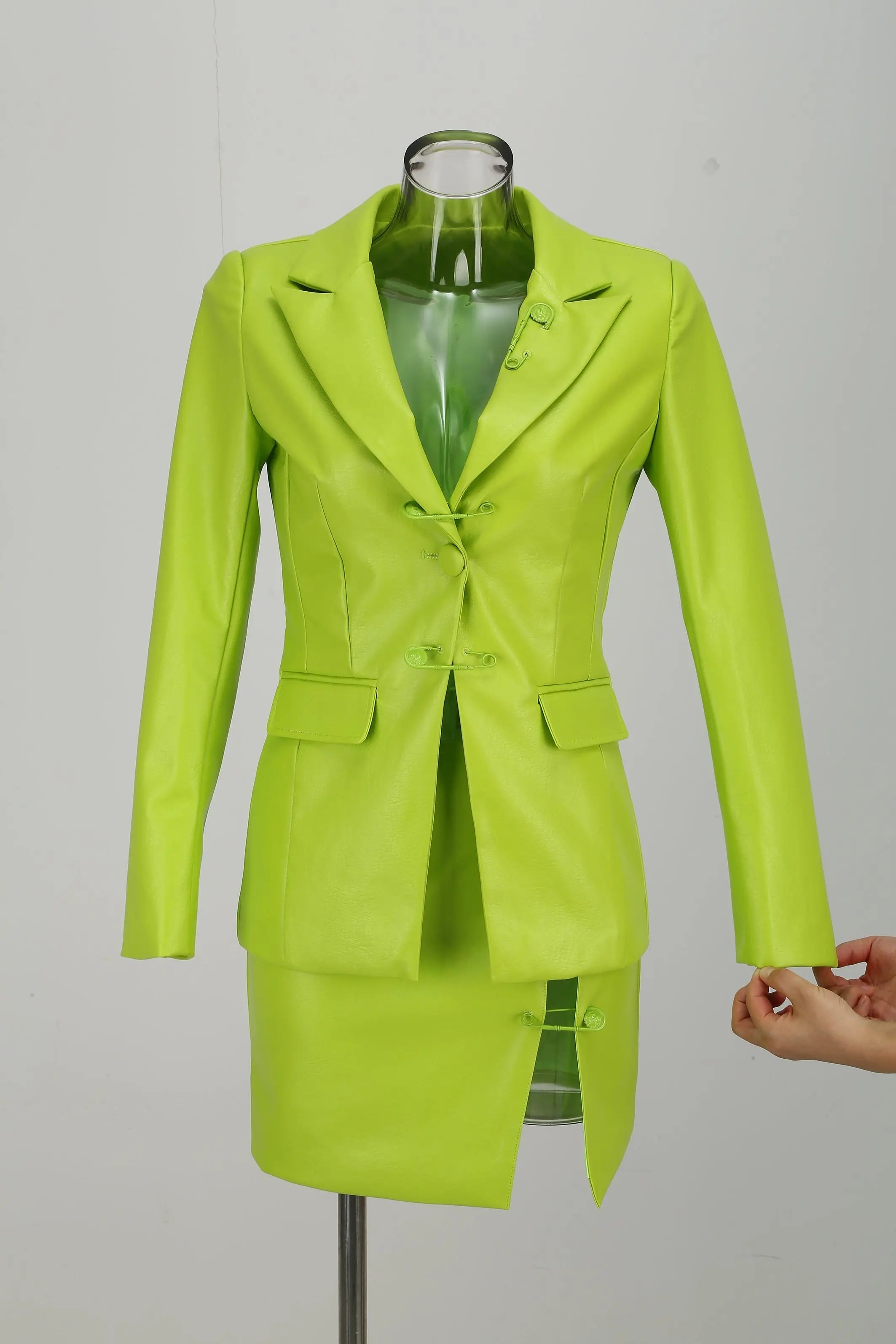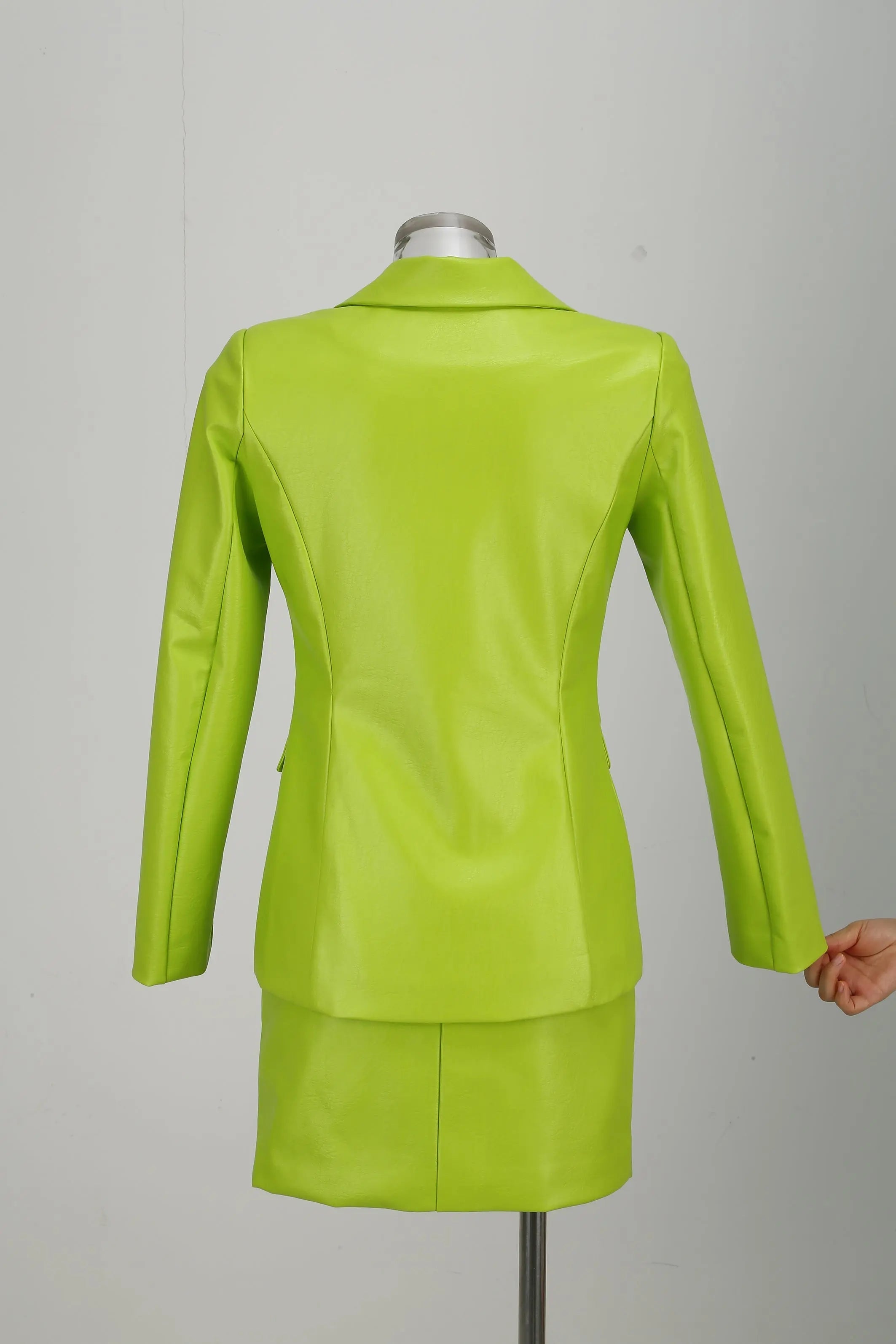 PU Jacket Blazer And Skirt Set Two Piece Set In Fluorescent Green