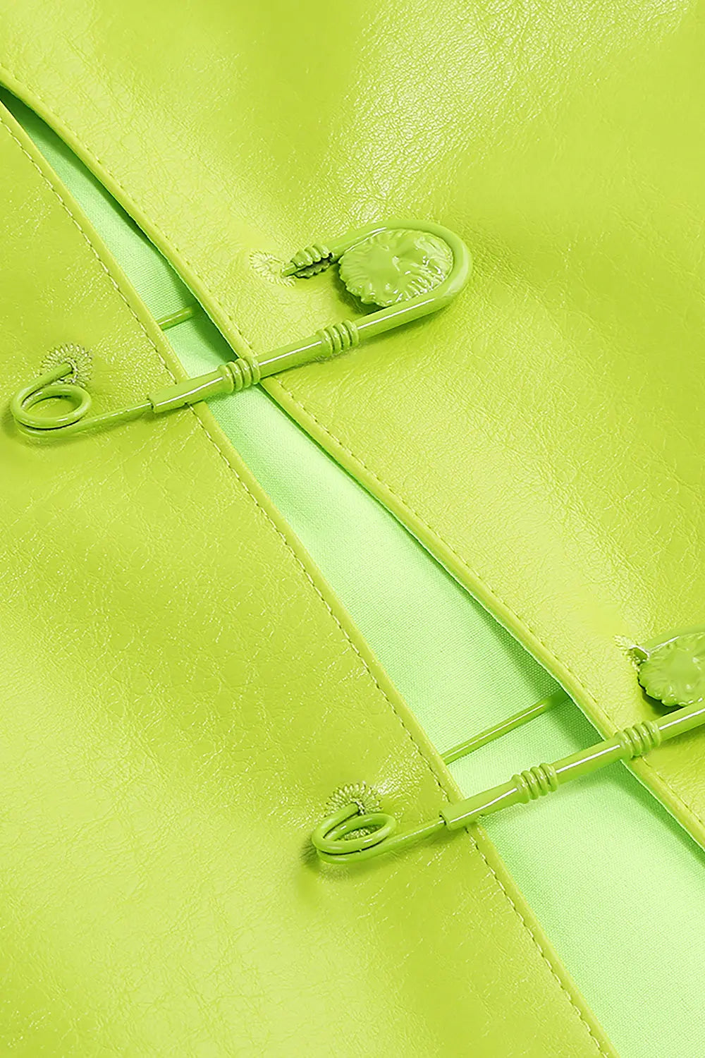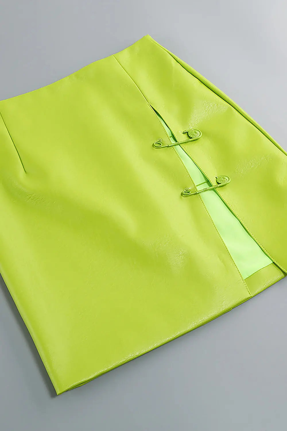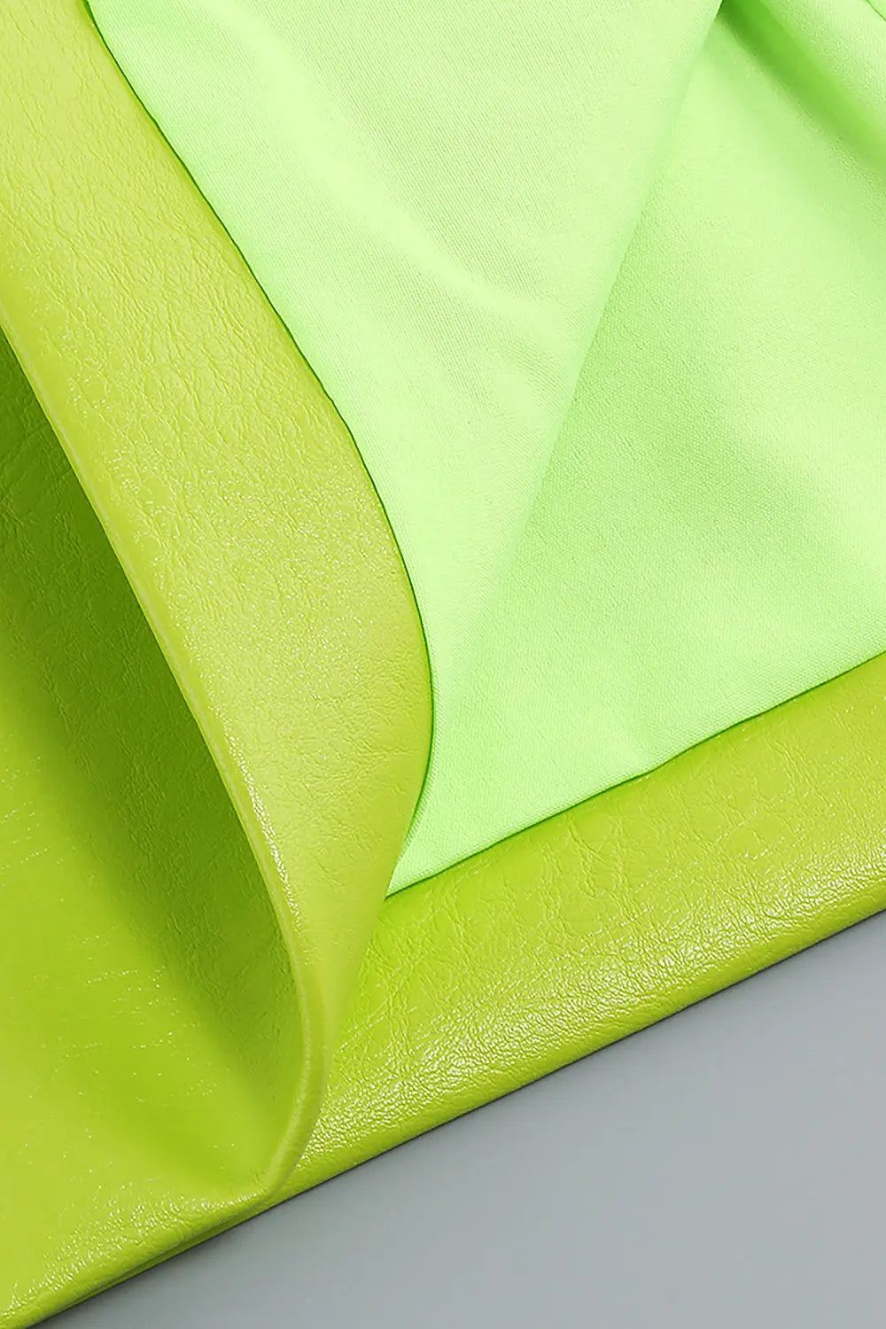 PU Jacket Blazer And Skirt Set Two Piece Set In Fluorescent Green