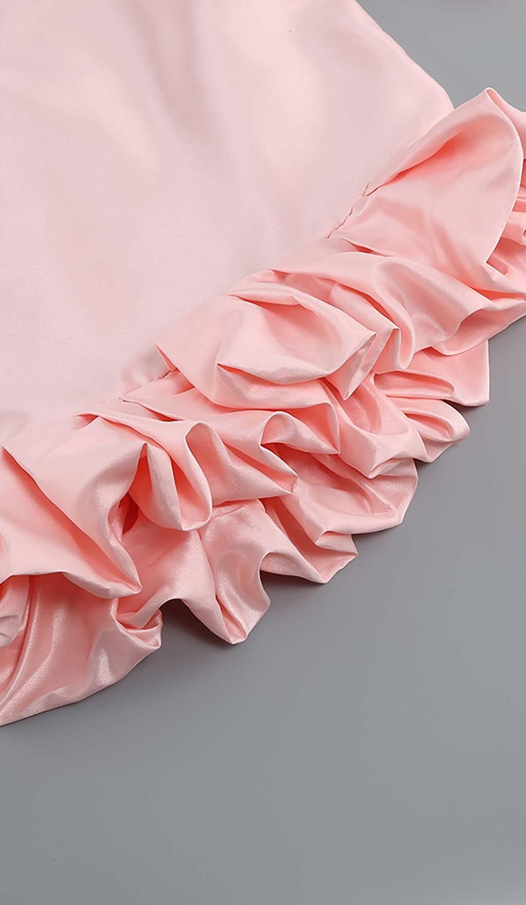 PUFF ASYMMETRIC MINI DRESS IN PINK