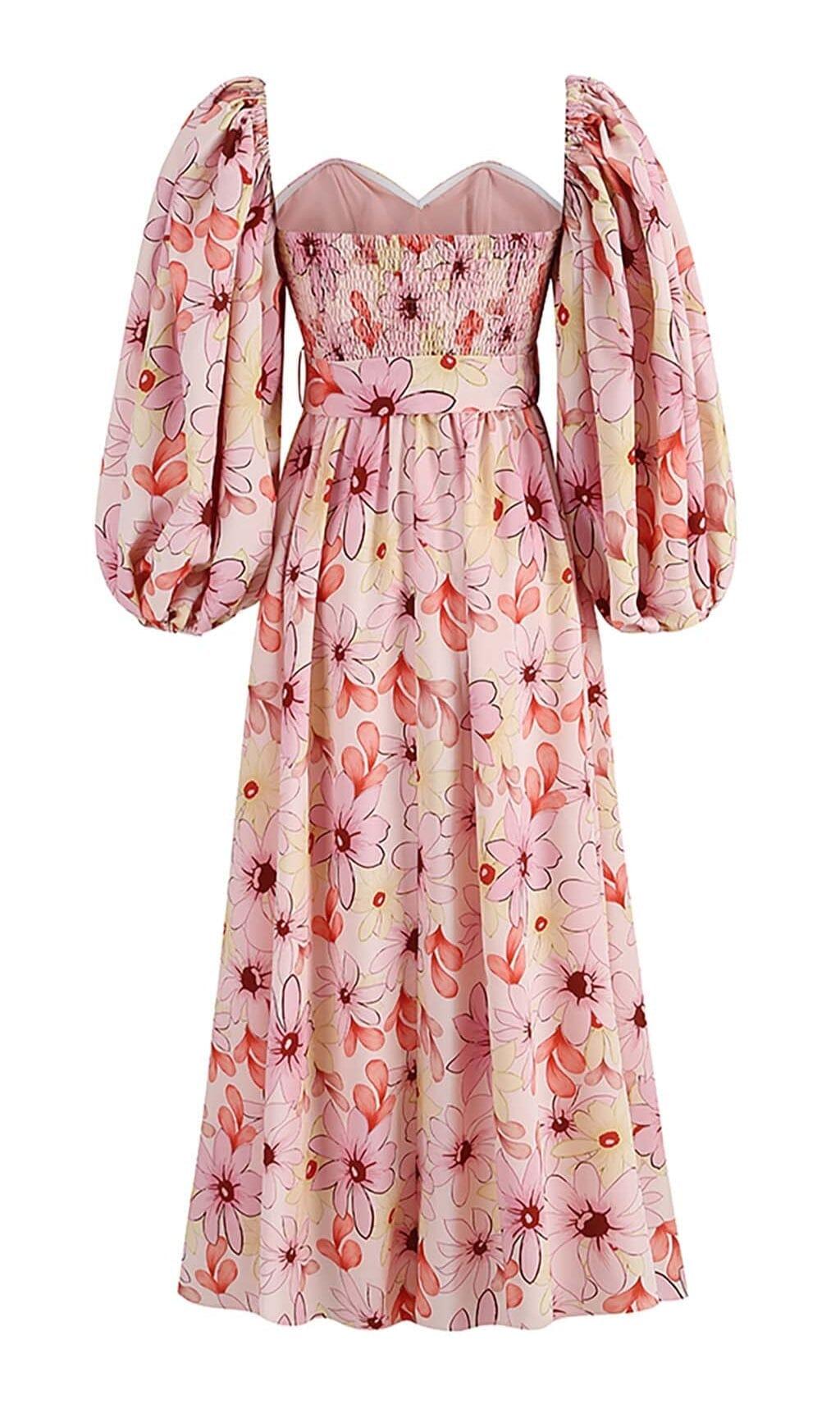 PUFF FLORAL MIDI DRESS IN PASTEL BLOOMS