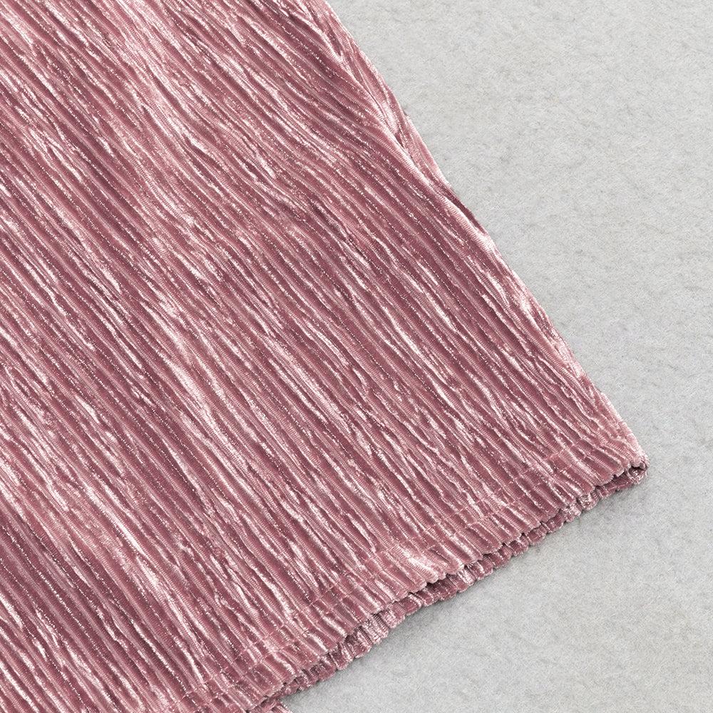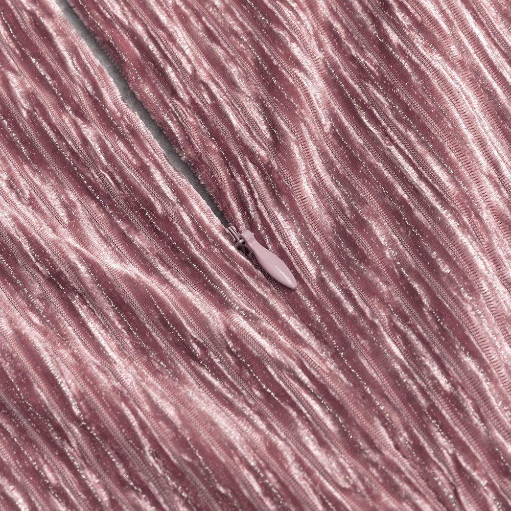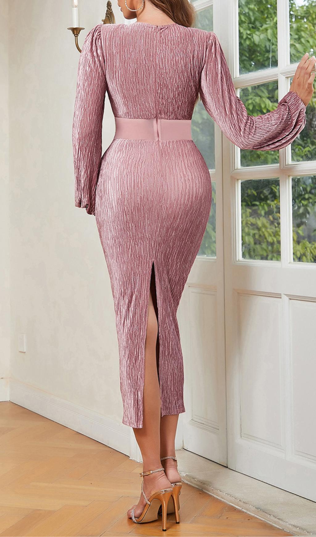 PUFF LONG SLEEVE VELVET MIDI DRESS IN PINK