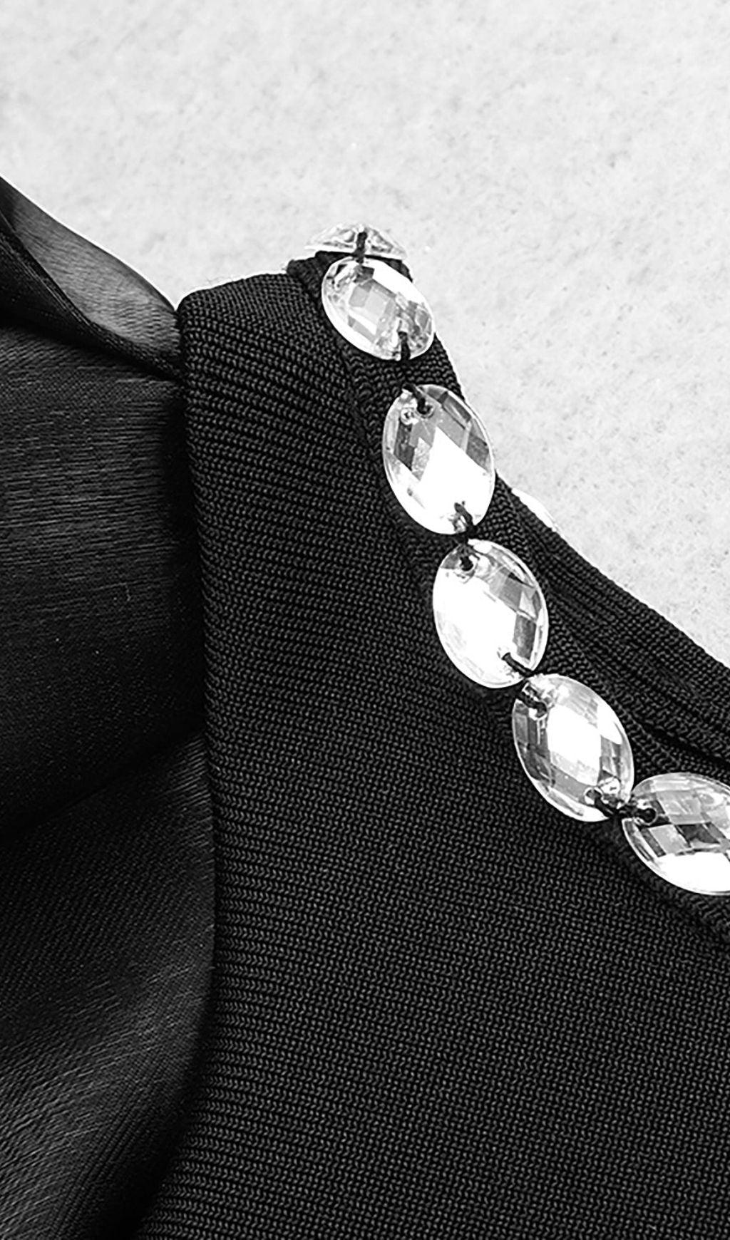 PUFF SLEEVE BANDAGE MINI DRESS IN BLACK