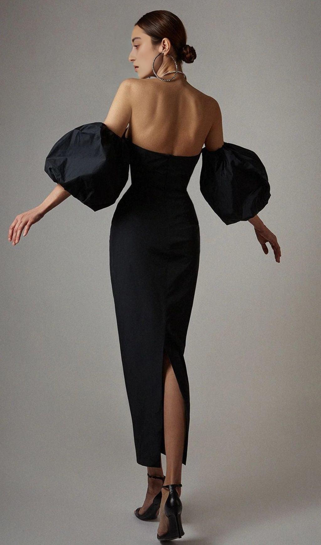PUFF SLEEVE DRESS IN BLACK
