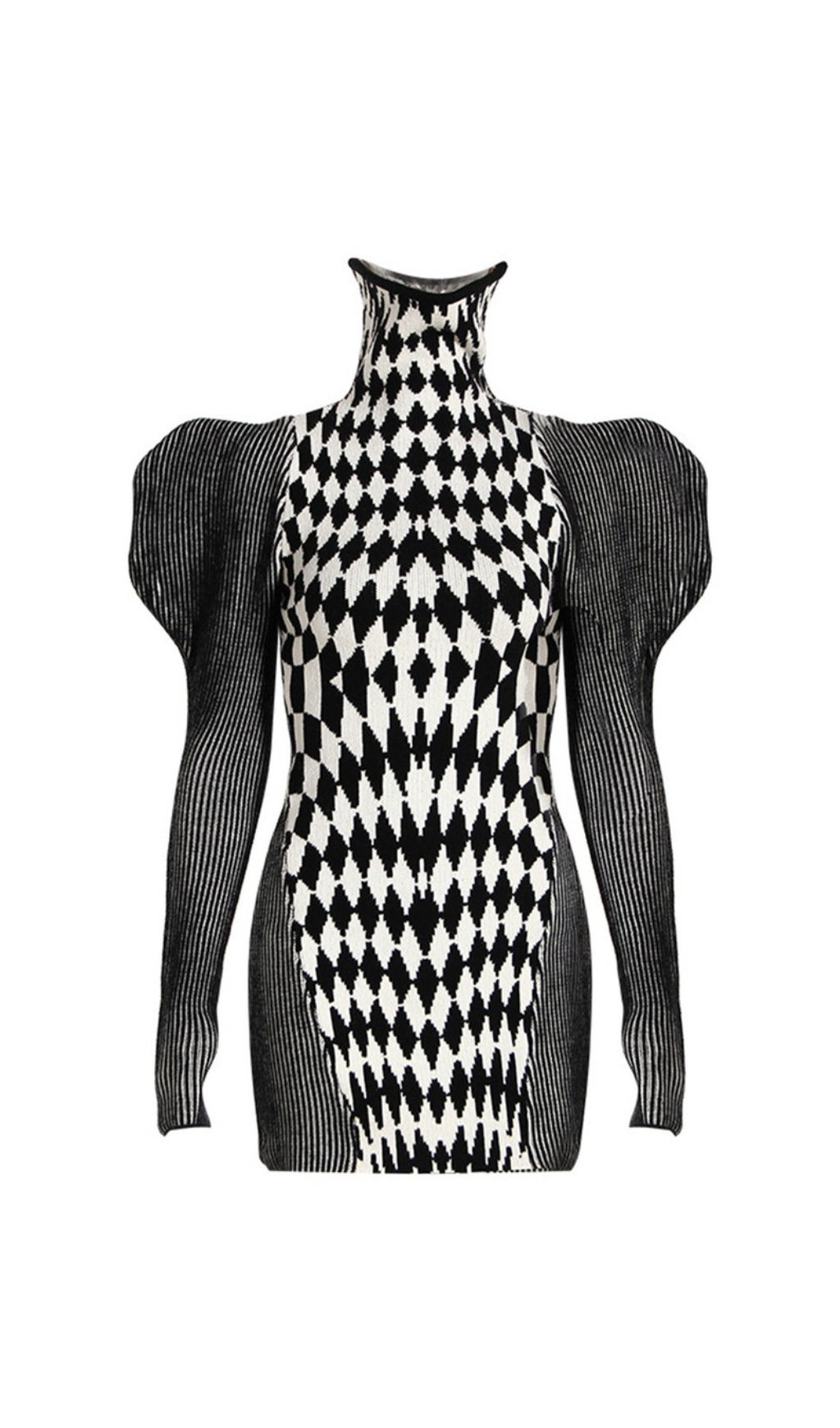 ARMANDE PUFF SLEEVE GEOMETRIC KNIT DRESS