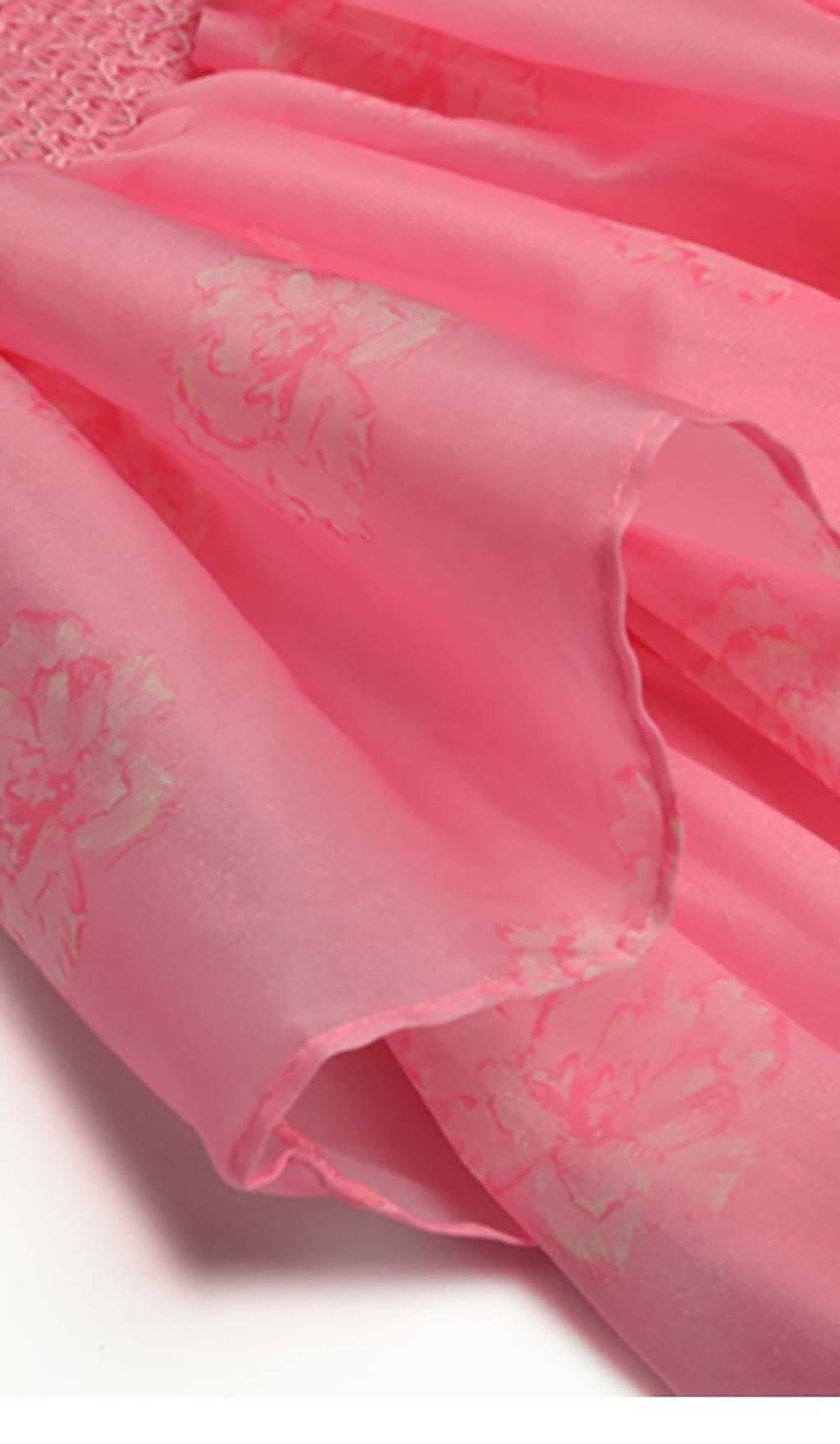 Feel like a fairytale princess in our Puff Sleeve Tiered Midi Dress in Pink. Romantic puff sleeves meet flowing tiered layers, presenting an enchanting silhouette. Perfect for those who love a feminine, whimsical touch in their wardrobe.