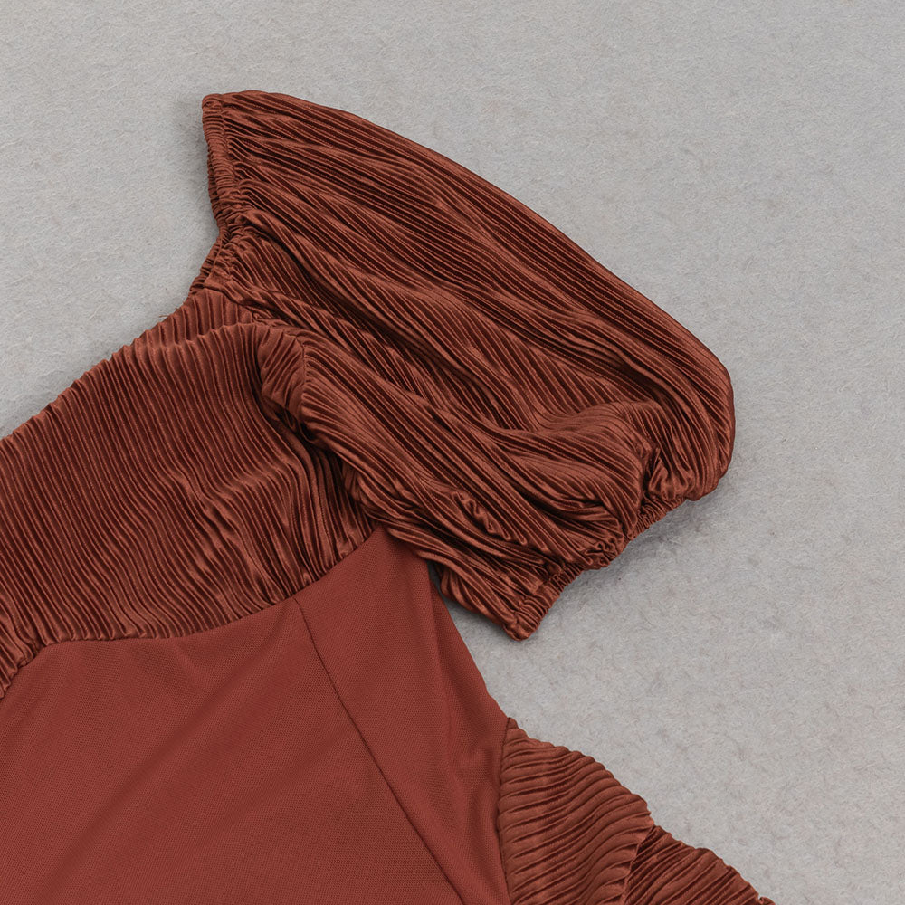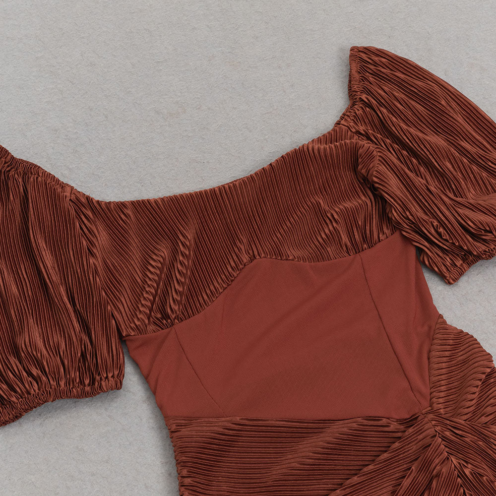 PUFF SLEEVE TWIST FRONT SPLIT THIGH DRESS