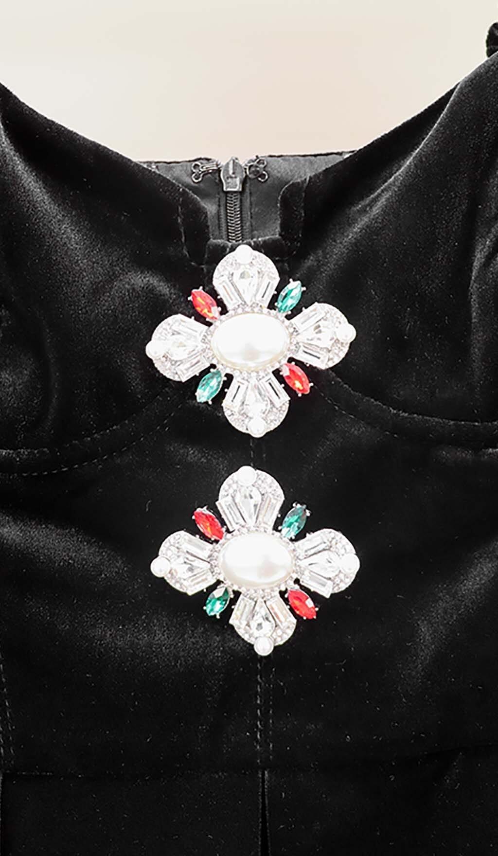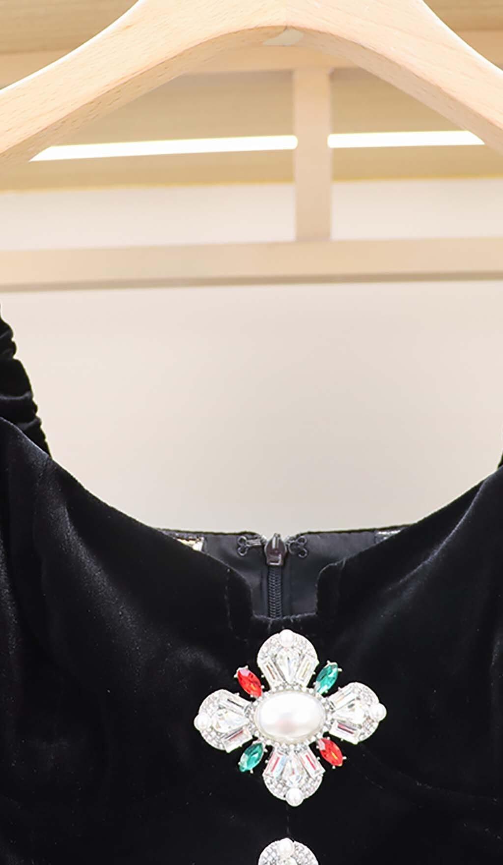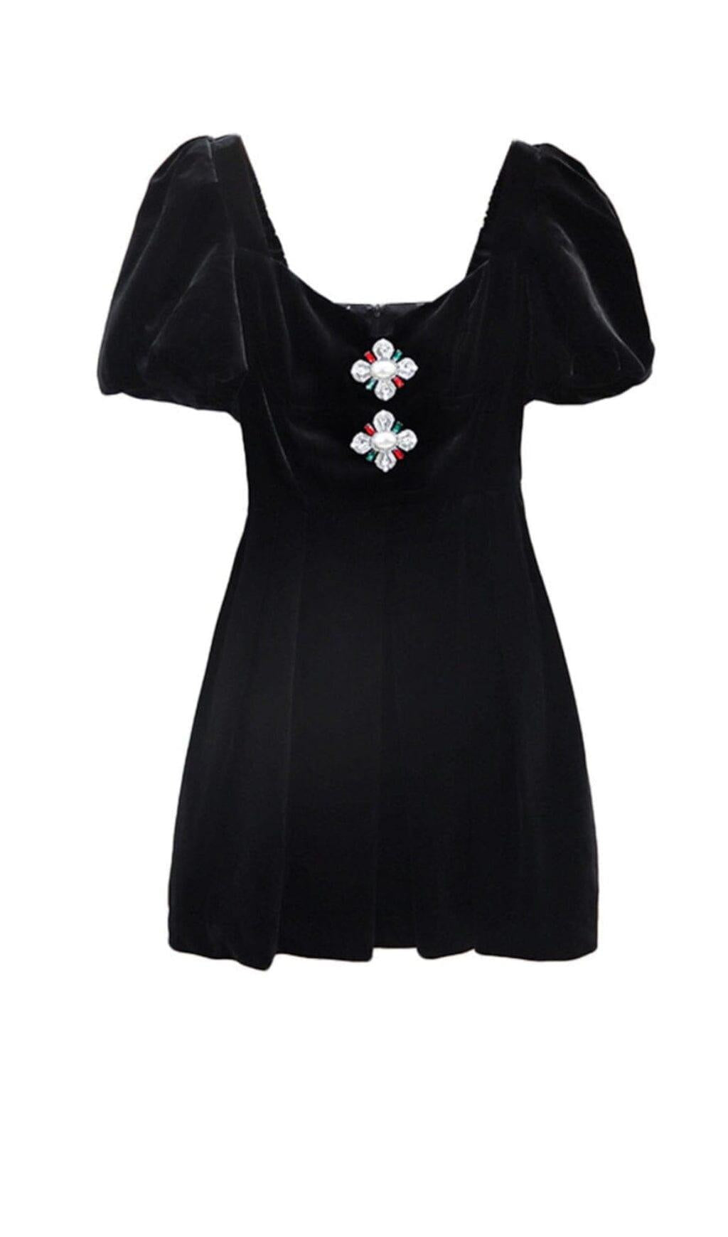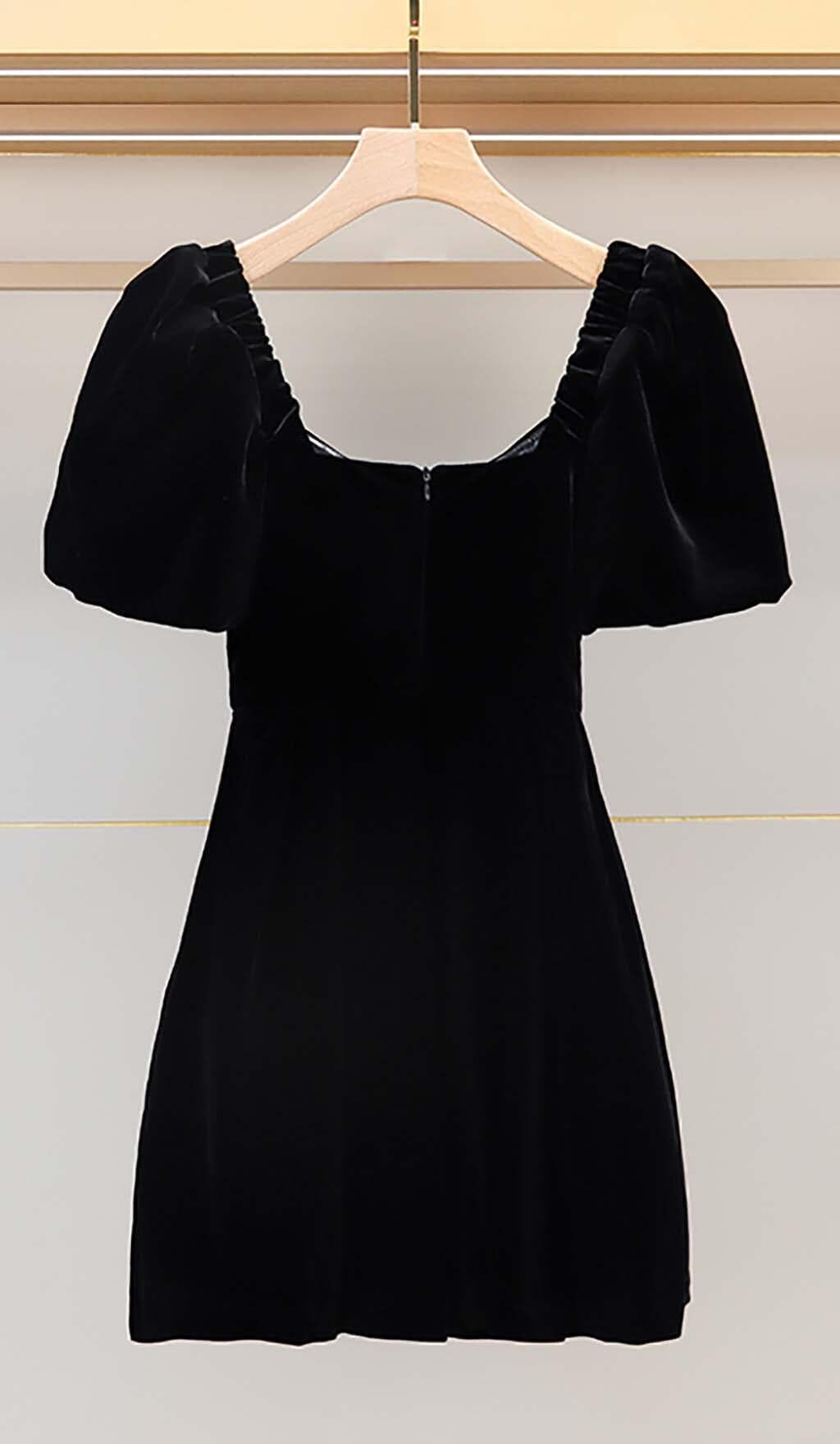 PUFF SLEEVE VELVET MINI DRESS IN BLACK