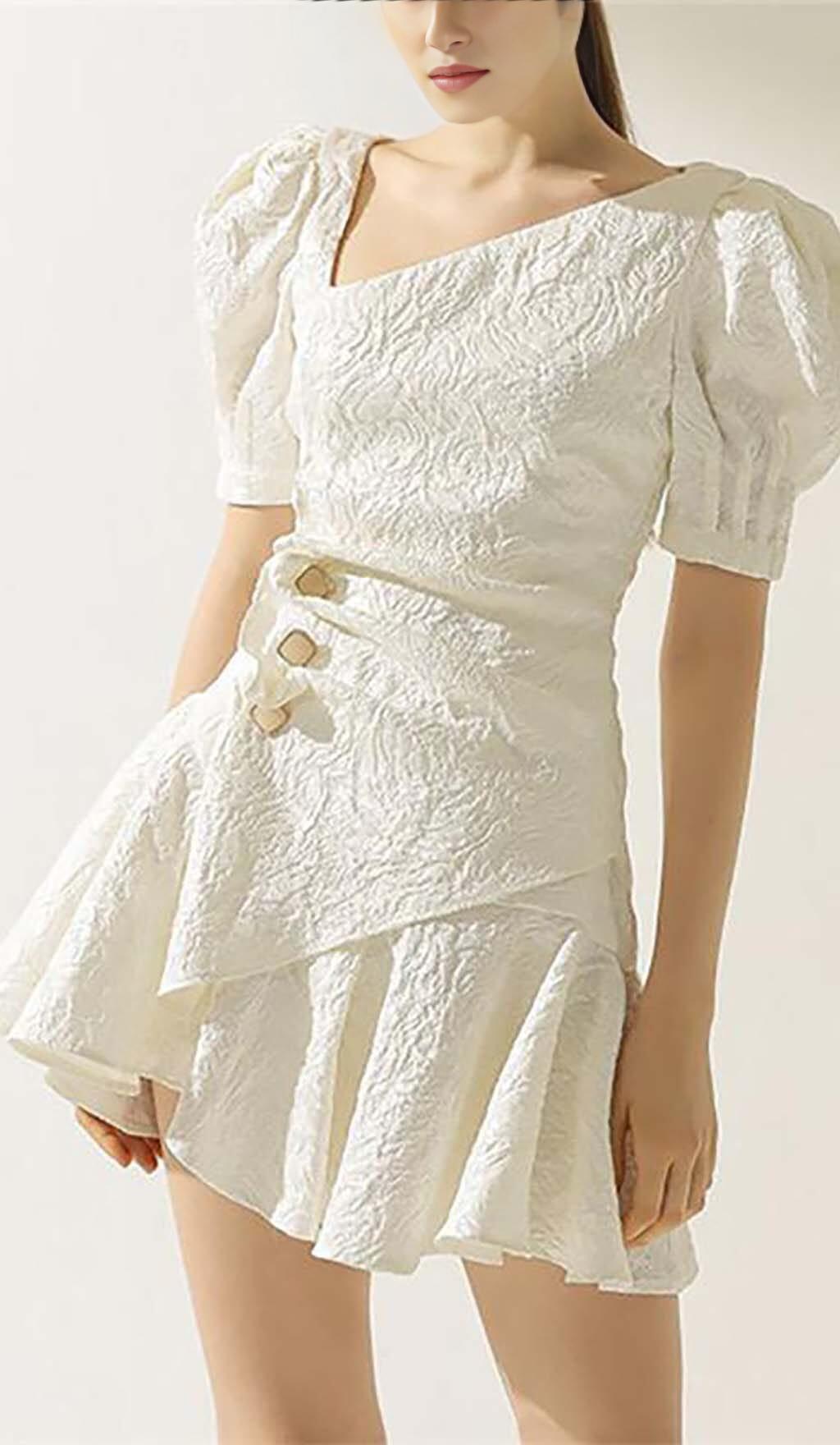 PUFFY SLEEVE BUTTON MINI DRESS IN WHITE
