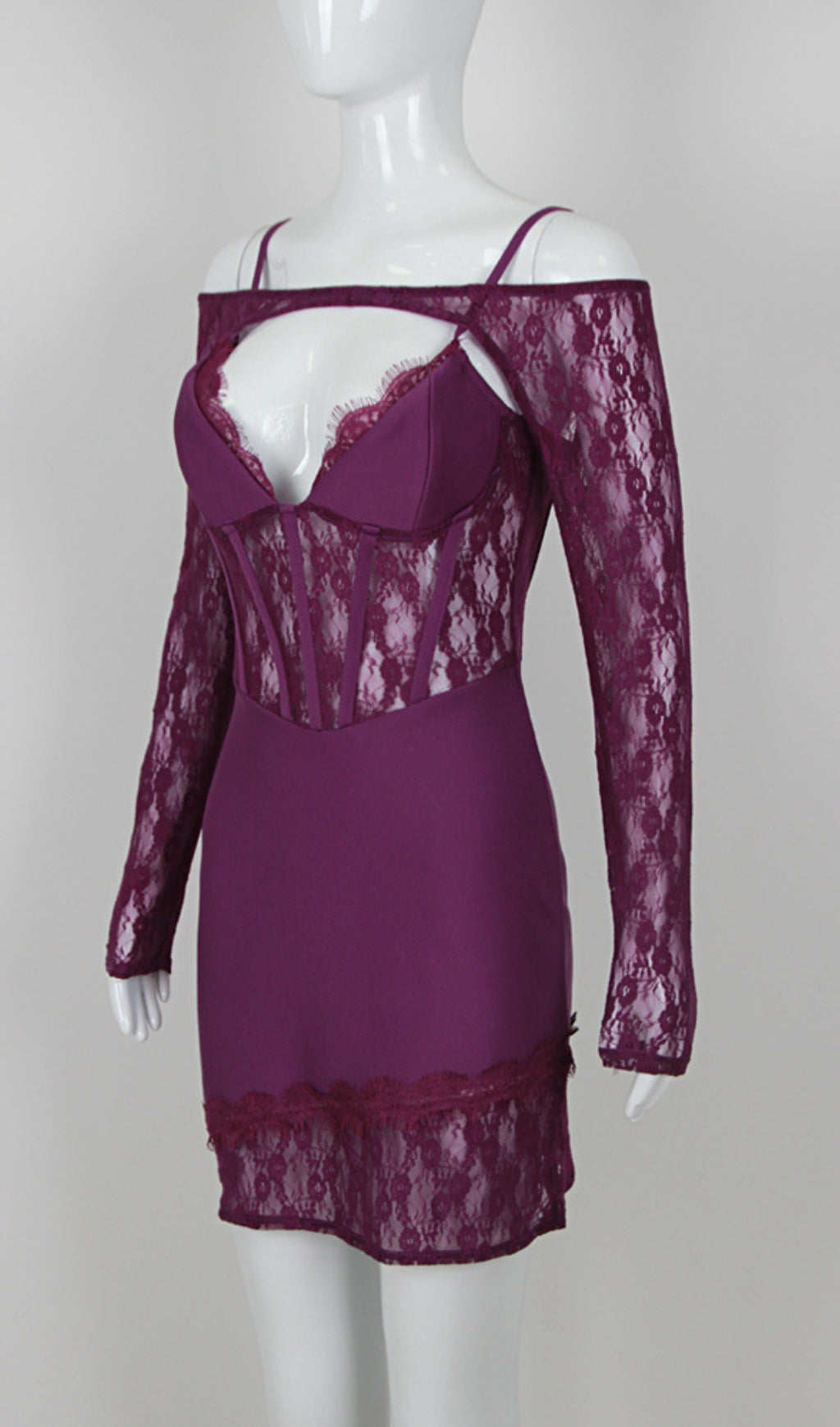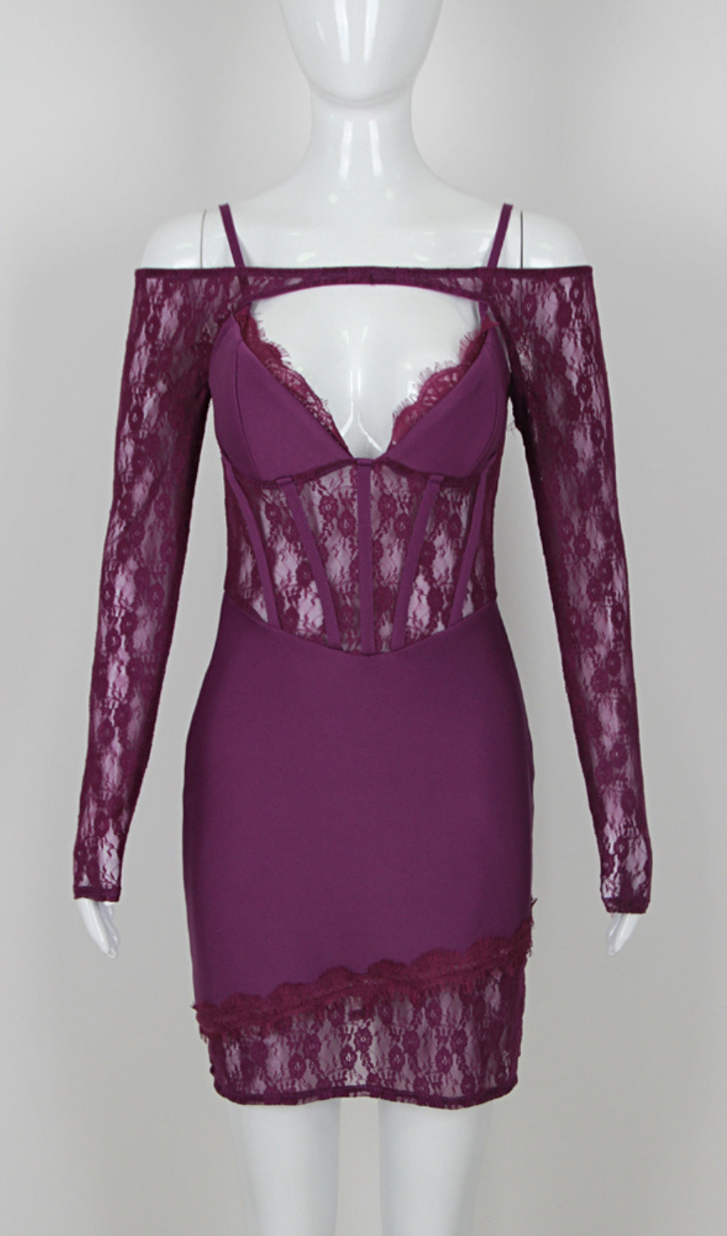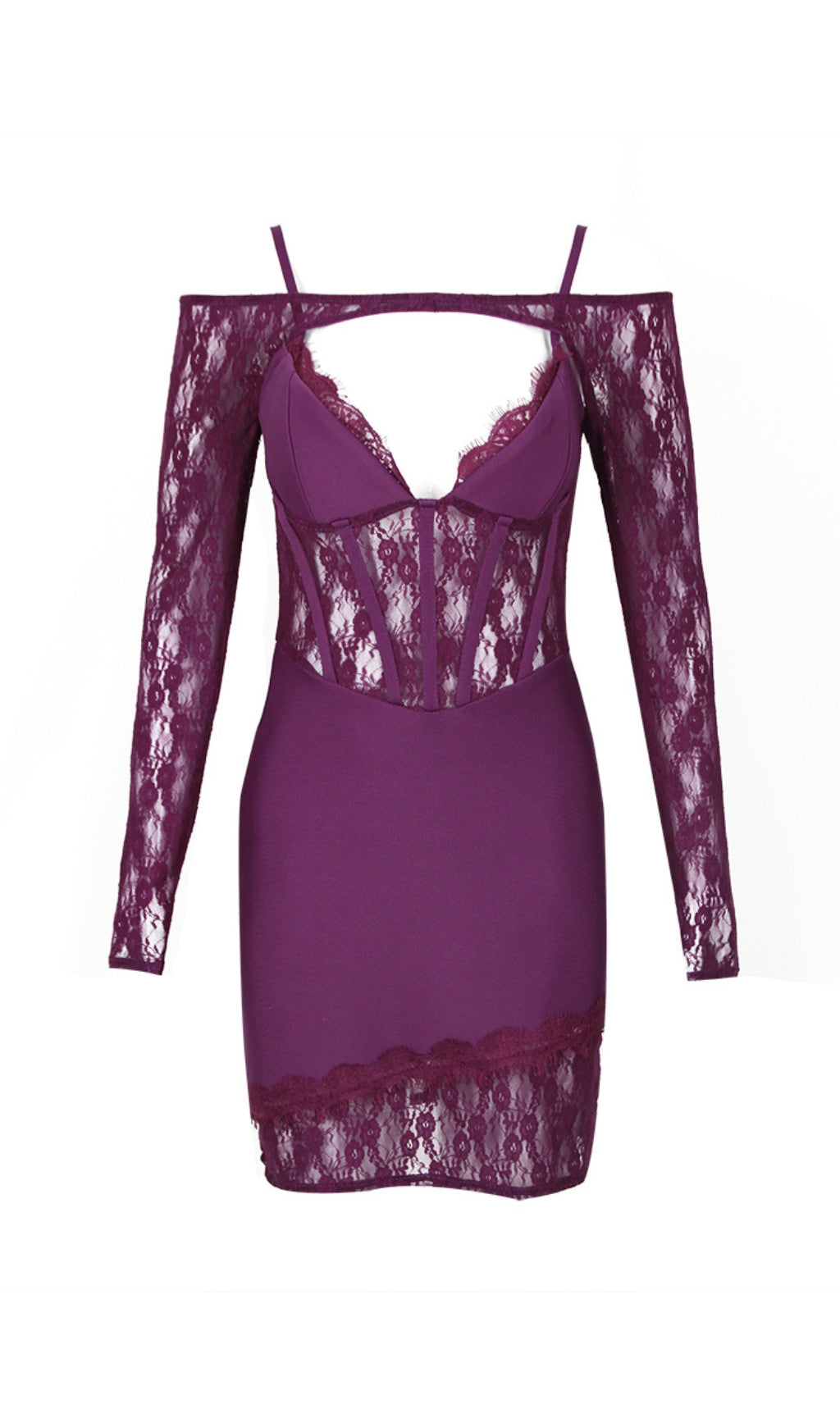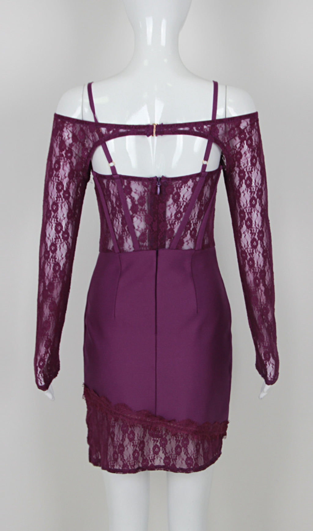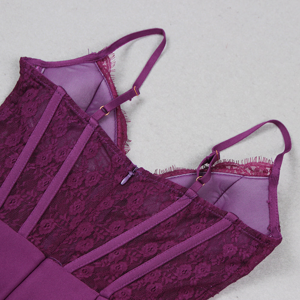 ACELINE PURPLE LACE PATCHWORK BANDAGE DRESS