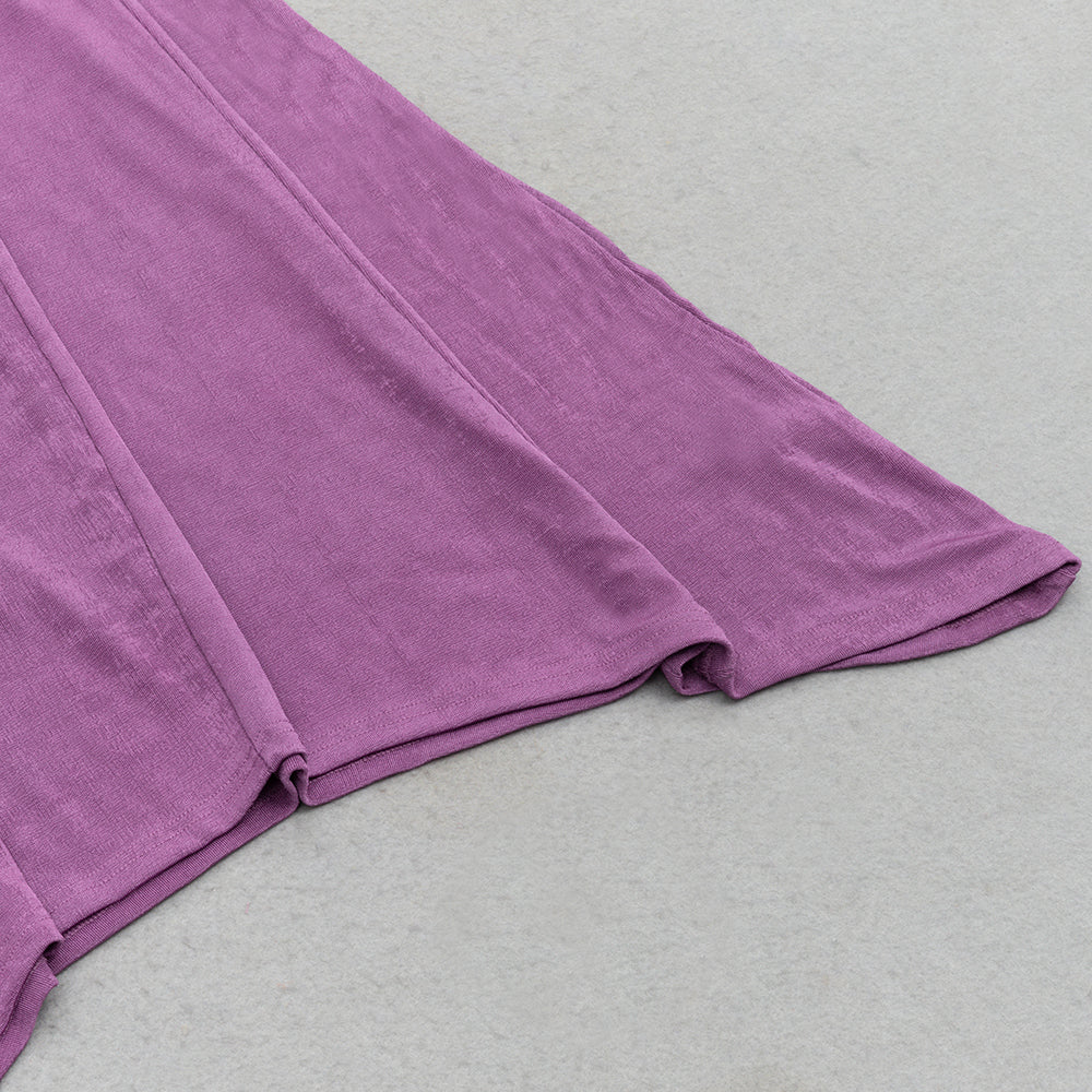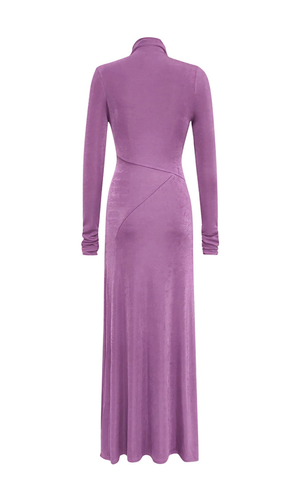 PURPLE LONG-SLEEVED HALTER NECK TIGHT FISHTAIL DRESS