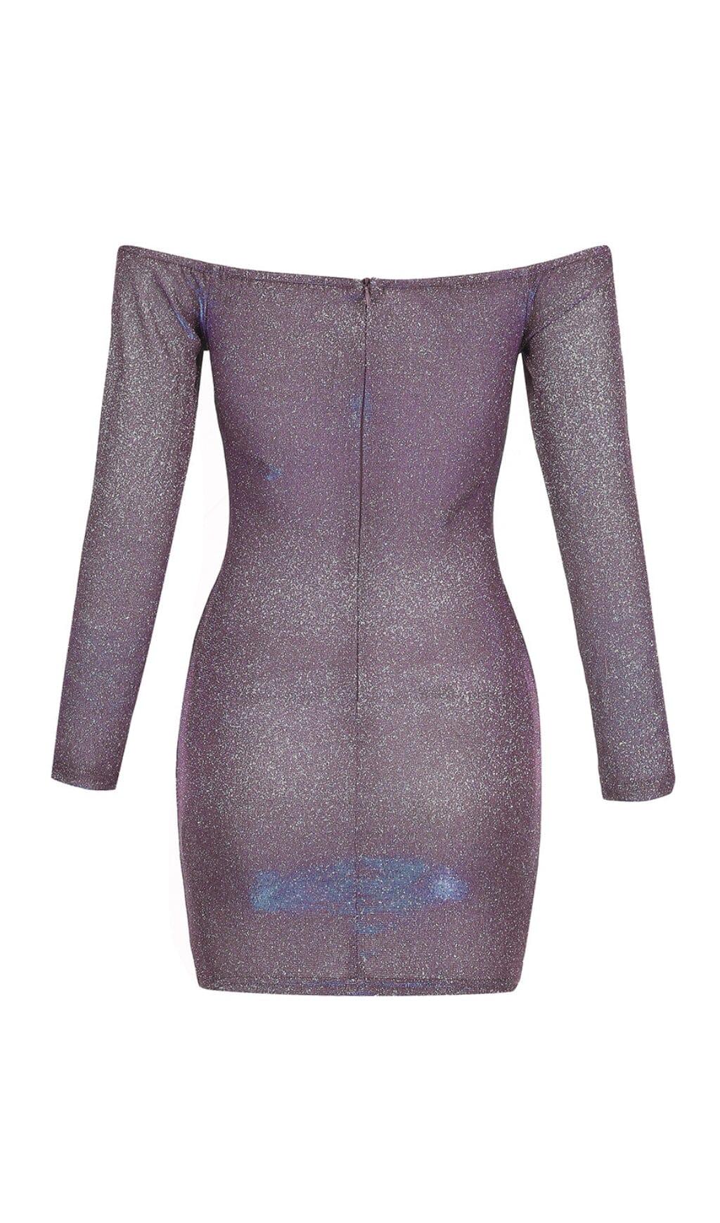 Pair our Purple Off Shoulder Mini Dress with a statement necklace or a neckband to complete your stylish look. The dress is versatile and can be accessorized in various ways to suit your personal style and the occasion. Let your creativity shine and make a fashion statement.