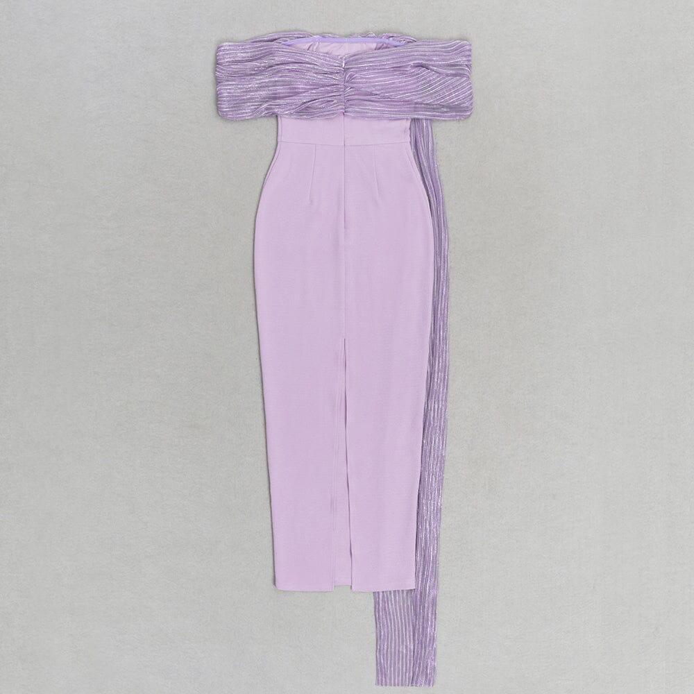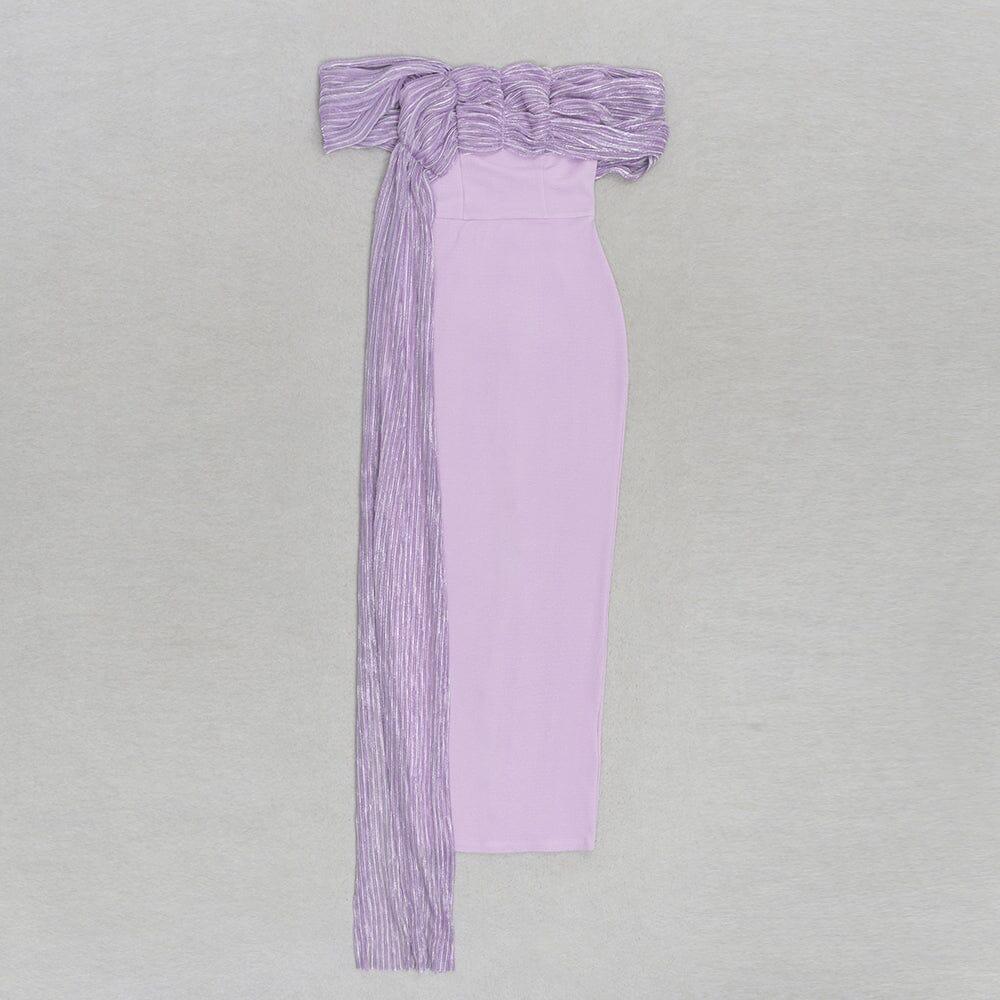PURPLE ONE-SHOULDER MAXI DRESS WITH RIGHT DROPPED SLEEVES