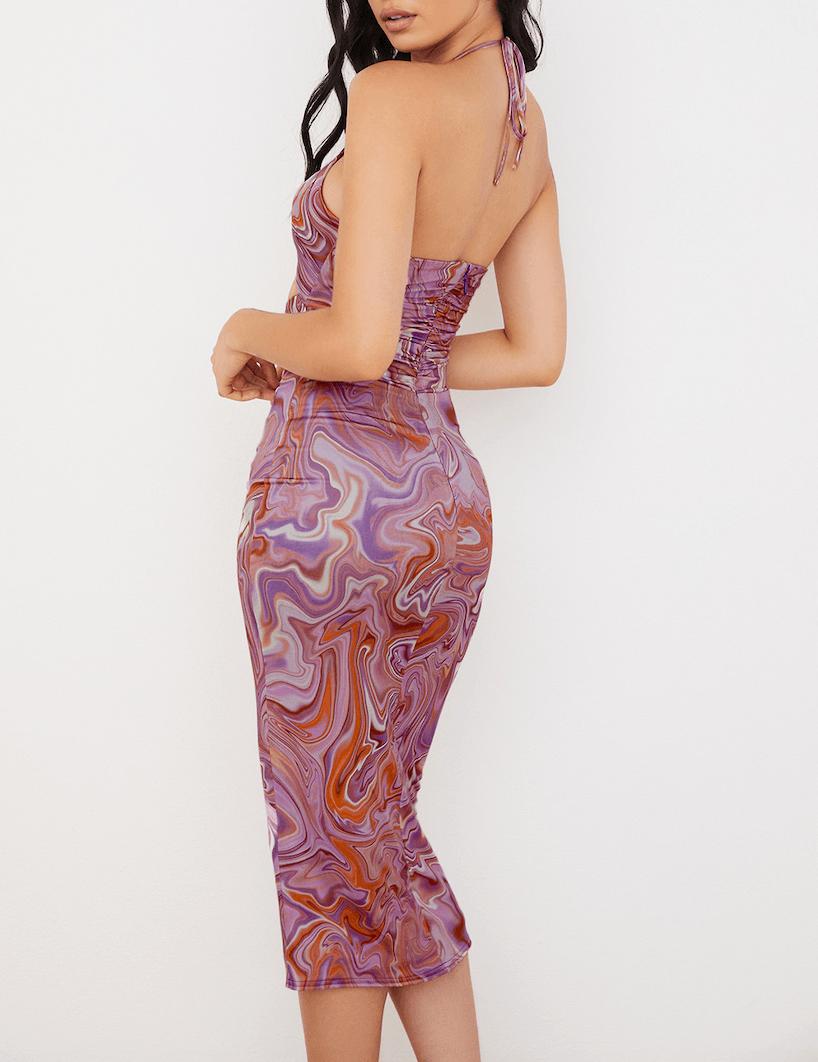 PURPLE SWIRL CUTOUT MIDI DRESS