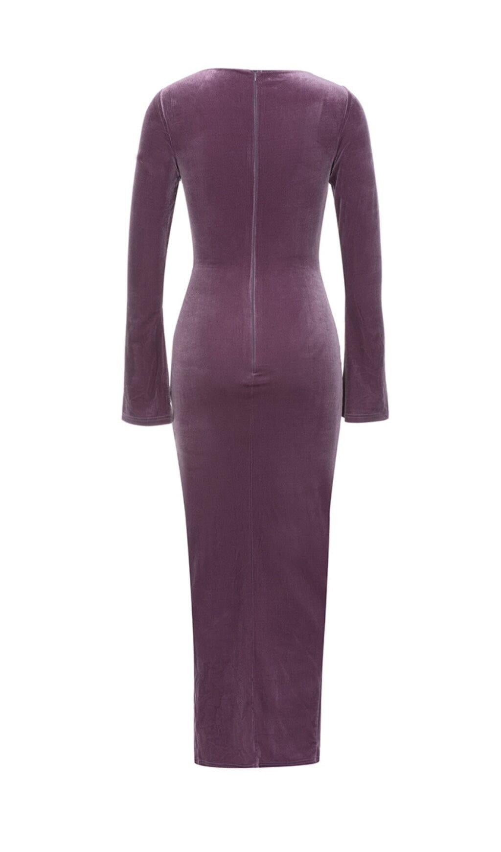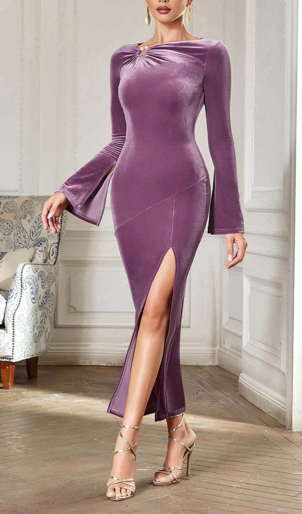 PURPLE THIN TRUMPET LONG-SLEEVED SLIM SLIT DRESS