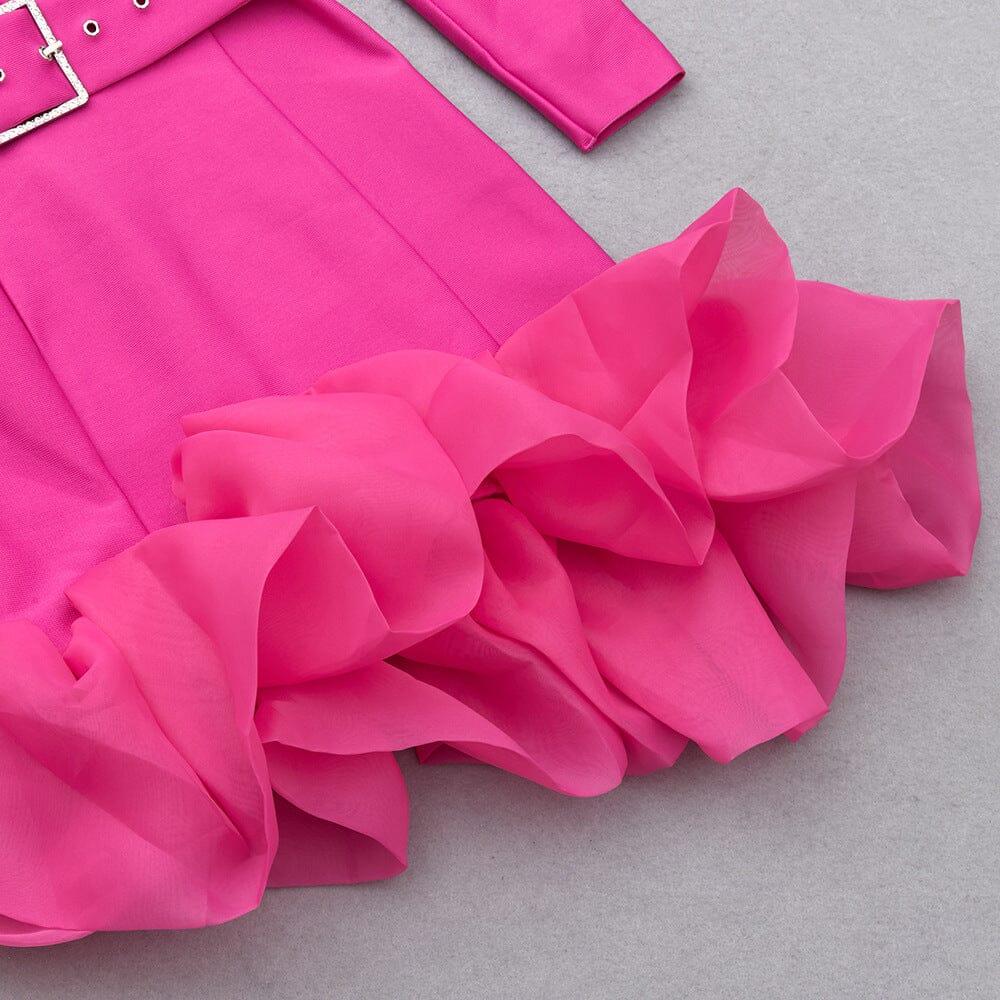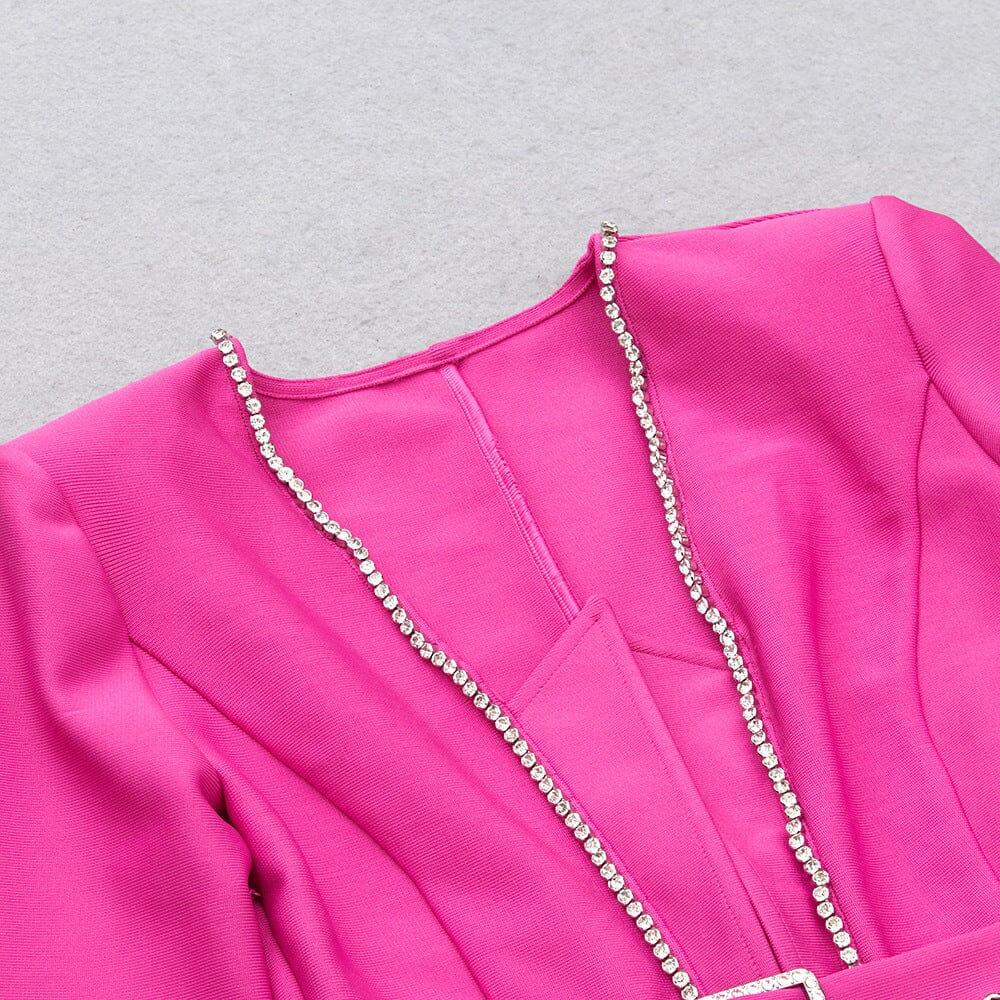 The Bandage V Neck Belt Mini Dress in Pink is the perfect dress for those who want to make a bold statement. With its dainty dragon fruit shade, this dress exudes a warm and lively vibe that will catch everyone's attention. Whether you're attending a party or a special event, this dress is sure to make you stand out from the crowd.