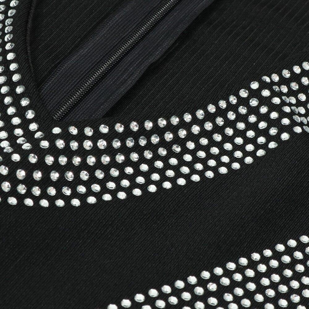 Our Bandage Diamond Mini Dress is the epitome of elegance and glamour. The black color scheme with silver line trim creates a strong visual impact, making it ideal for tall, fair-skinned women with a distinguished temperament. The impeccable craftsmanship and attention to detail make this dress a must-have for beauty lovers with a unique sense of style.