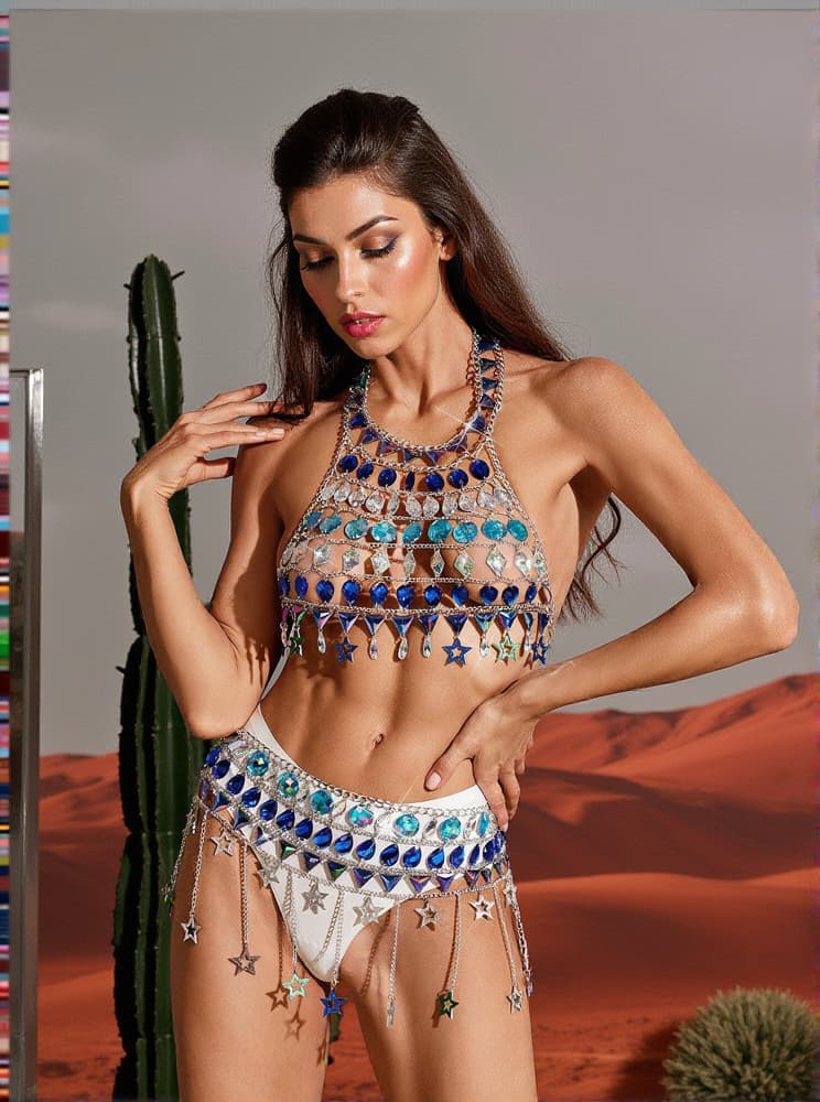 Quetzalli Star Rhinestone Body Chain Skirt Set