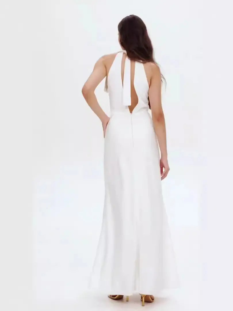 RACHEL WHITE HALTER SATIN BACK CUTOUT MAXI DRESS