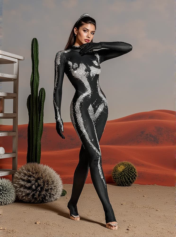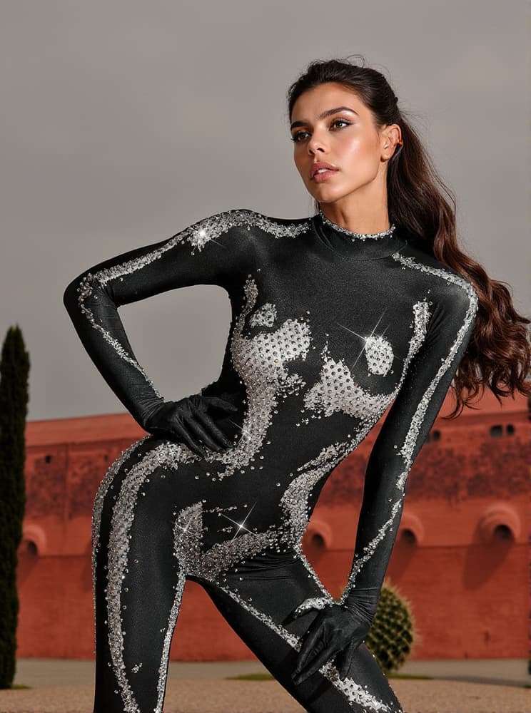 Unleash your inner diva with the Radek Body Printed Rhinestone Gloves Jumpsuit. Featuring a dazzling rhinestone design and chic gloves, this jumpsuit is the perfect blend of style and comfort. Stand out in any crowd and make a bold statement with this must-have piece.