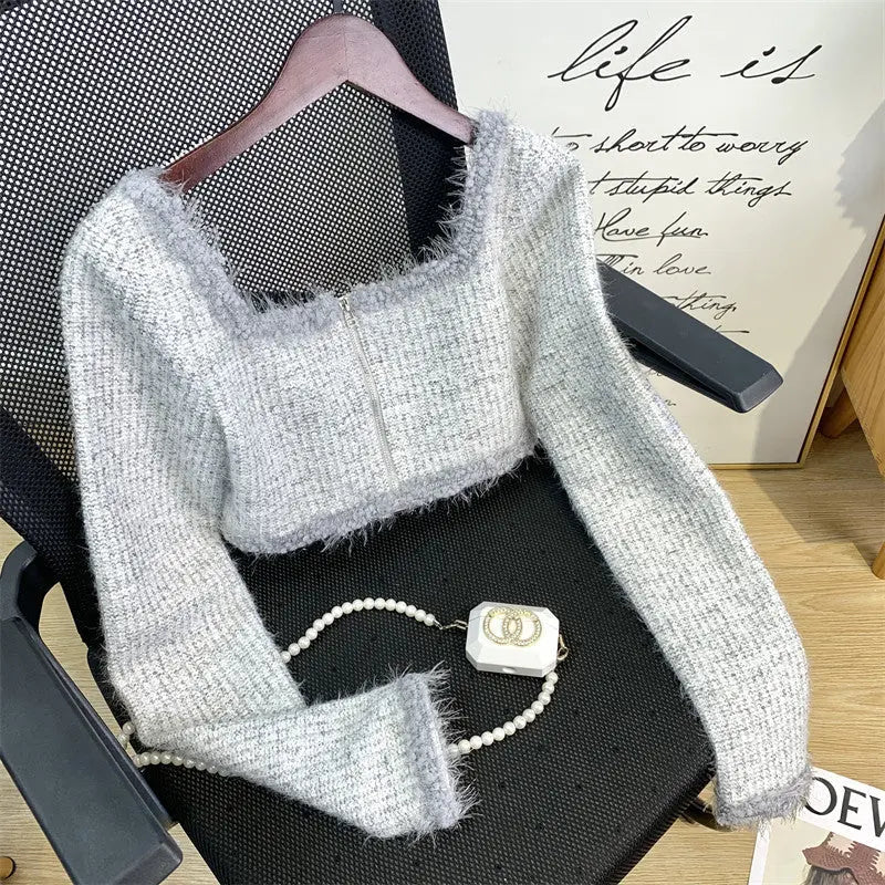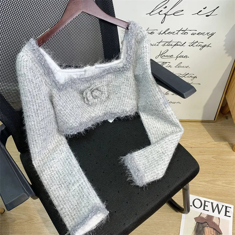 GREY KNIT LONG SLEEVE TWO PIECE SET