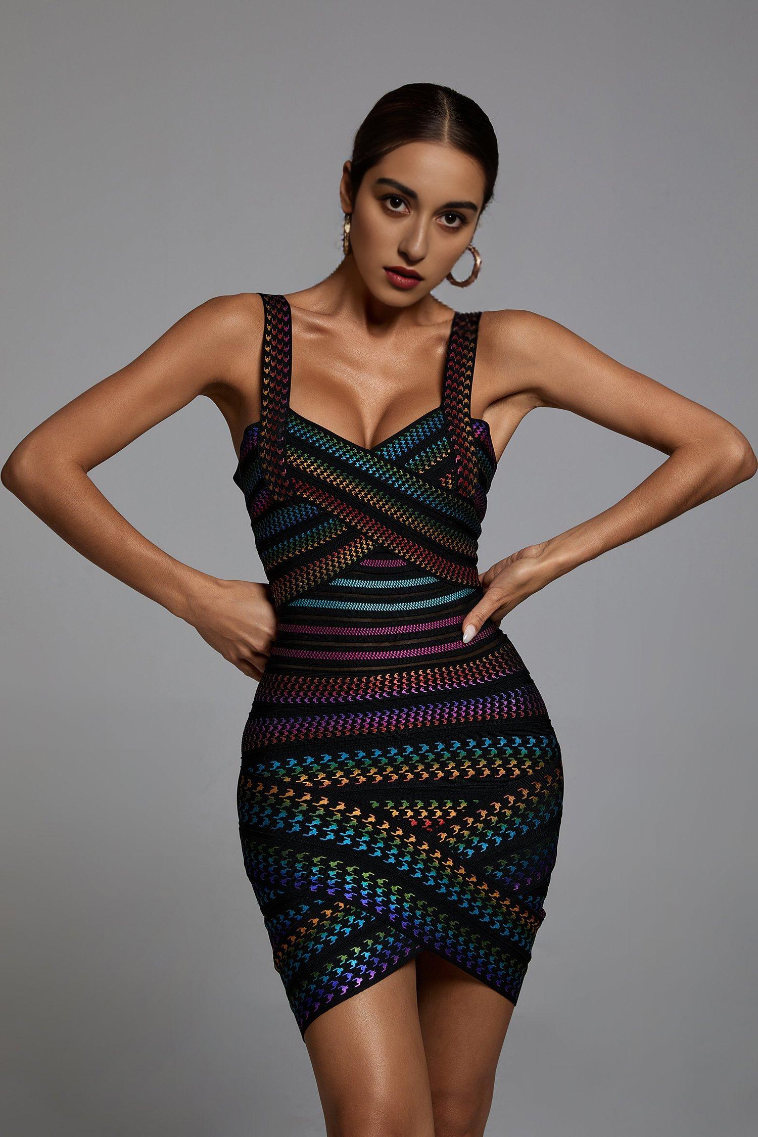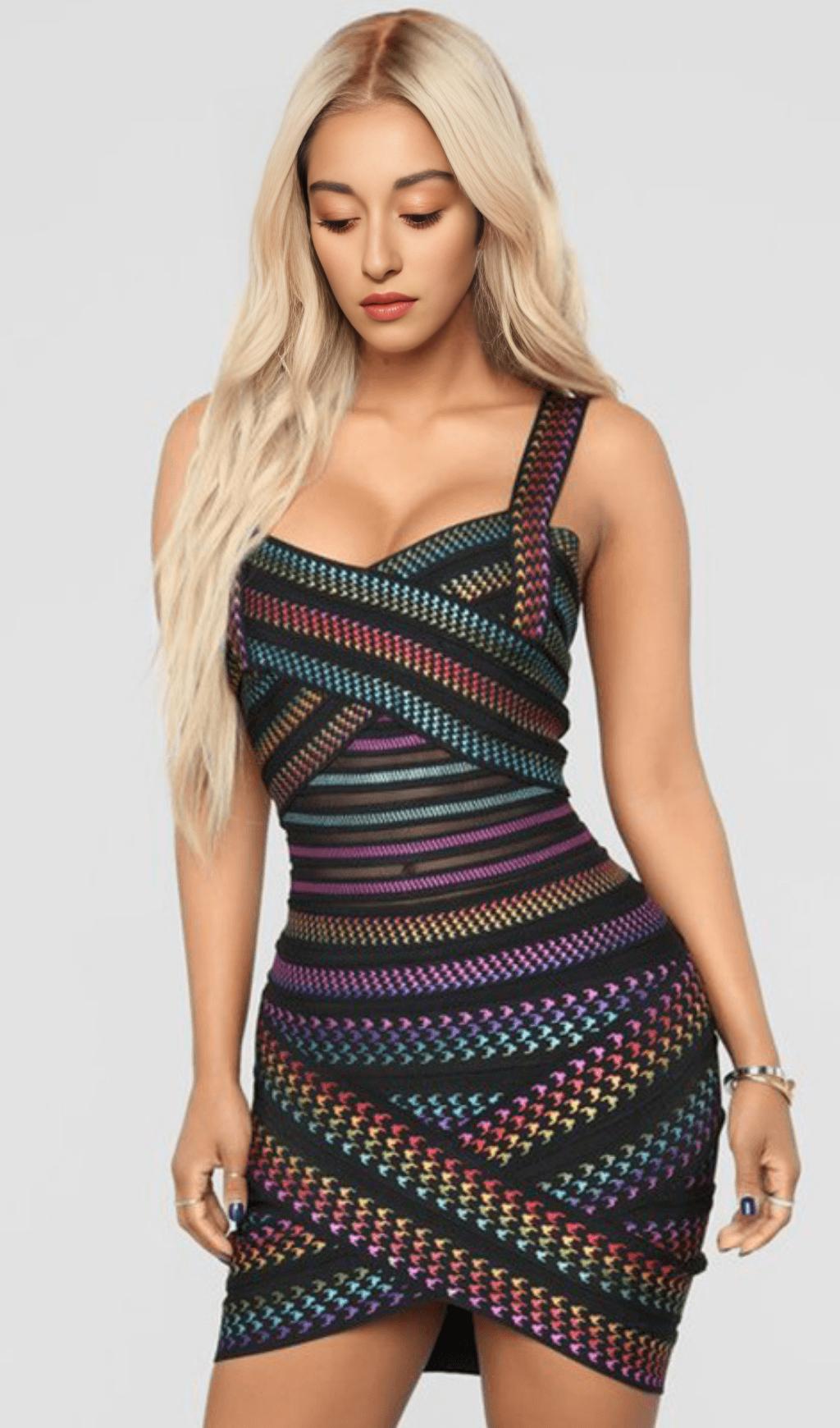 RAINBOW BANDAGE MINI DRESS