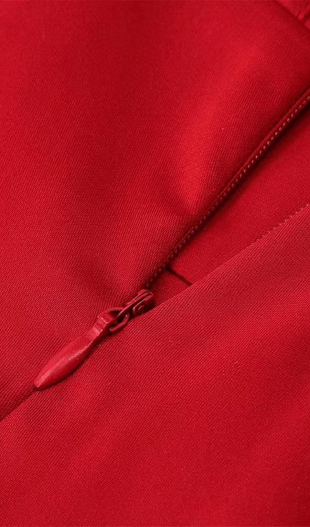 Introducing the ASYMMETRIC DRAPE MIDI CORSET DRESS IN RED