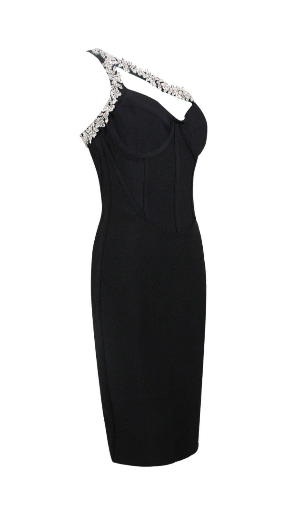 • One-shoulder design with crystal diamond straps for a glamorous look