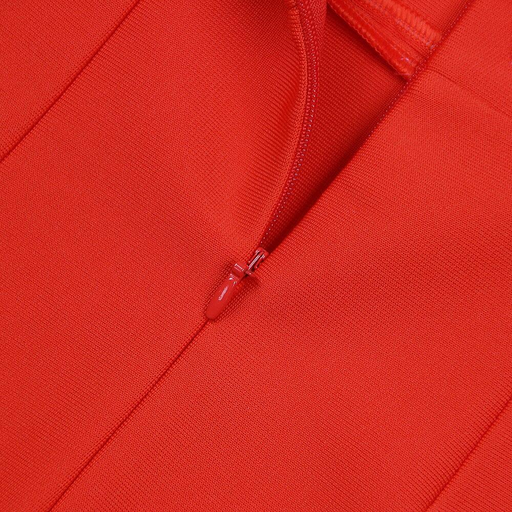 RED FEATHER TRIM MINI DRESS
