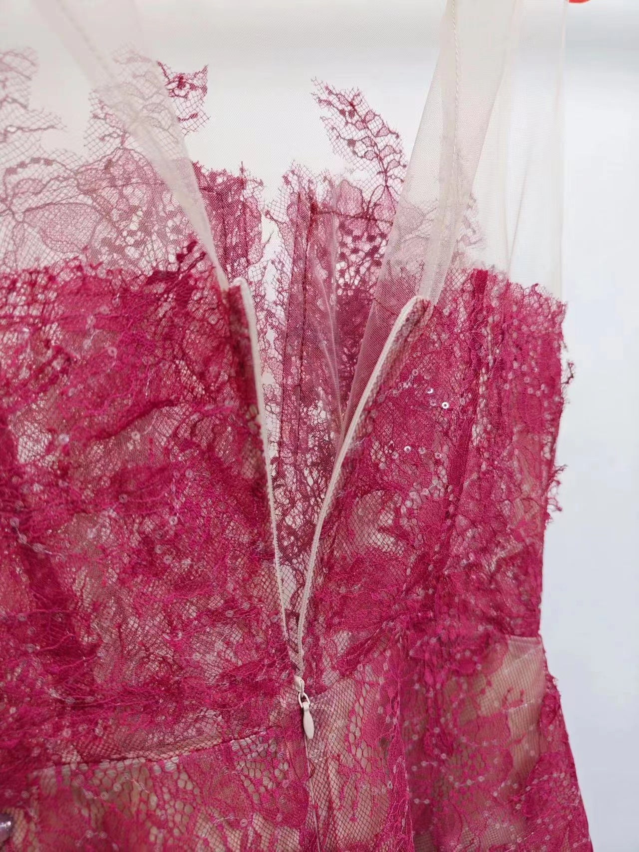 RED FLORAL LACE EMBROIDER MIDI DRESS